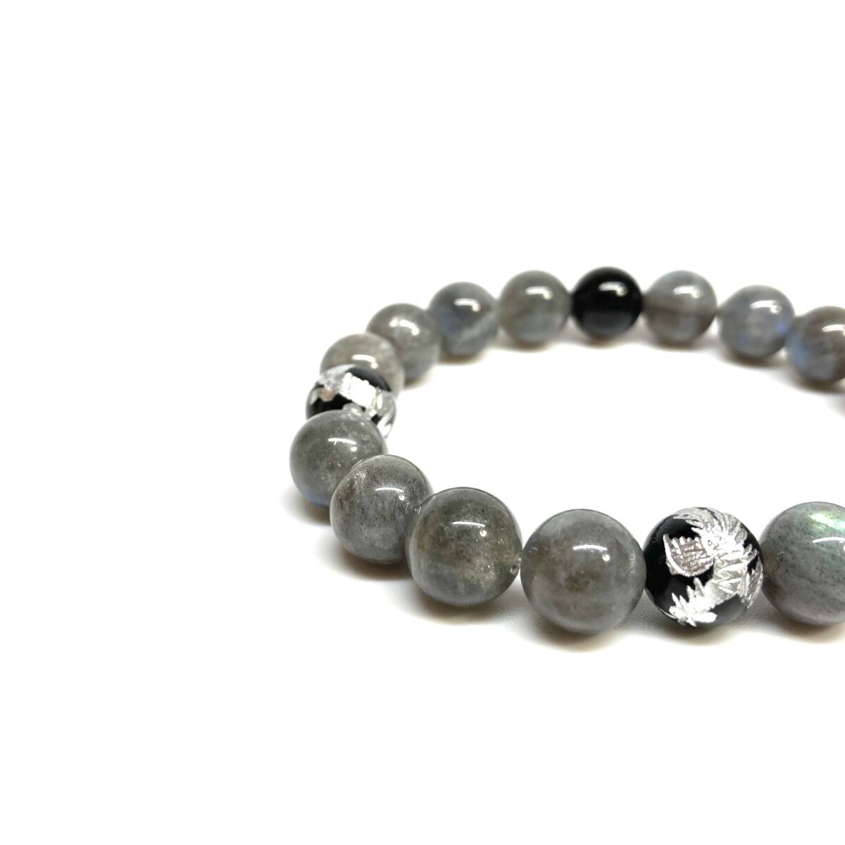 10mm 四神獣銀彫オニキス×ラブラドライト パワーストーン ブレスレット天然石 運気上昇 開運 金運 恋愛運 青龍 白虎 玄武 朱雀 ☆