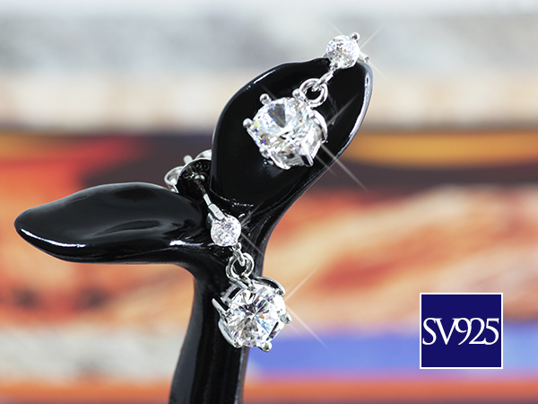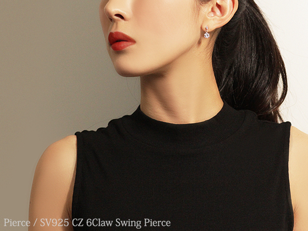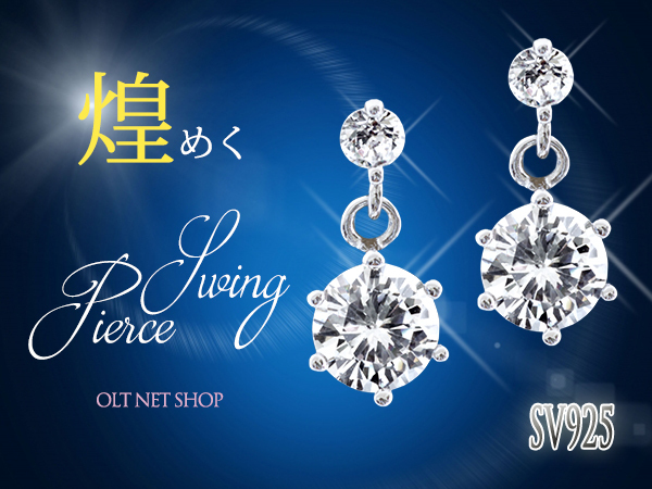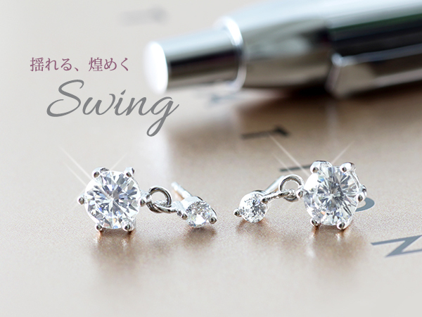 ピアス レディース シルバー 揺れる ジルコニア 銀 プラチナ仕上げ シンプル 上品 女性 / SV925 CZダイヤ 6爪スウィングピアス 1.25ct