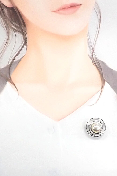 コメントタサキの、スパイラルの中心に艶めく瑞々しい輝きのマベパールをセットした、スタイリッシュな雰囲気のブローチです。透かしのデザインなので圧迫感なくカジュアルにお召しいただけます。
