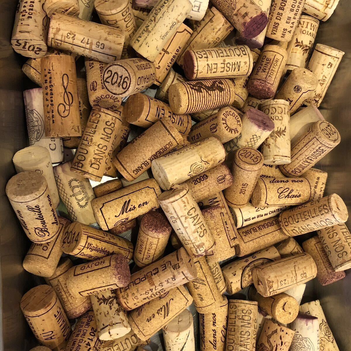 フレンチ、イタリアンの店舗で提供したワインのコルクを集めたものです