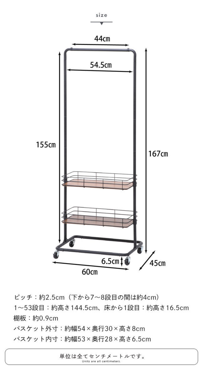 | 商品名 | ハンガーラック カゴ付き 幅60 奥行45 高さ167 キャスター付き コートハンガー ラック 衣類 キャスター付 収納 ホワイト M5-MGKFGB00313WH |