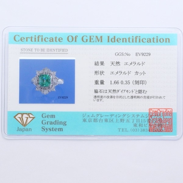| PT900 リング 指輪 11号 エメラルド 1.66 ダイヤ 0.35 カード鑑別書 総重量約6.1g 中古 美品 送料無料 | |