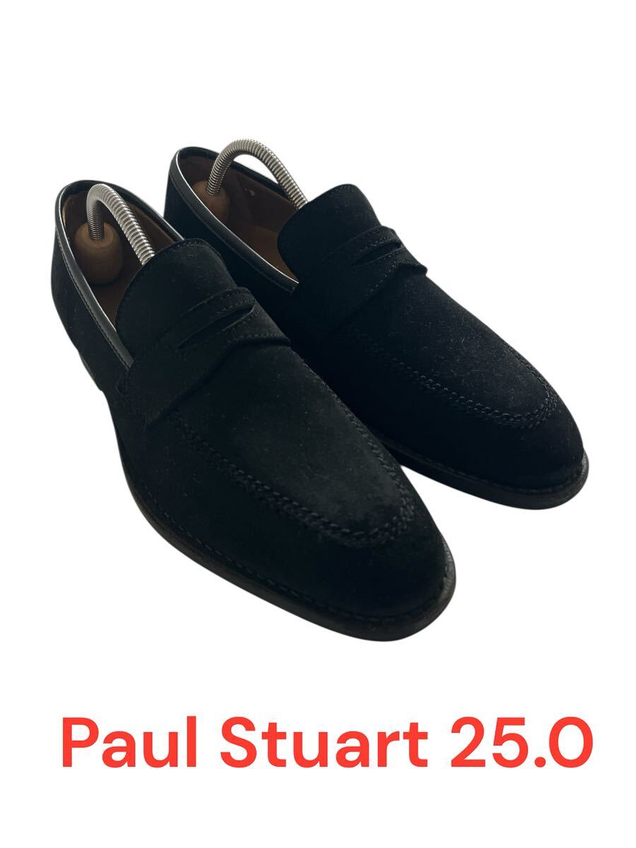 ★Paul Stuart ポールスチュワート★ローファー/25.0㎝/ビジネスシューズ/カジュアルシューズ/スエード/ブラック/黒