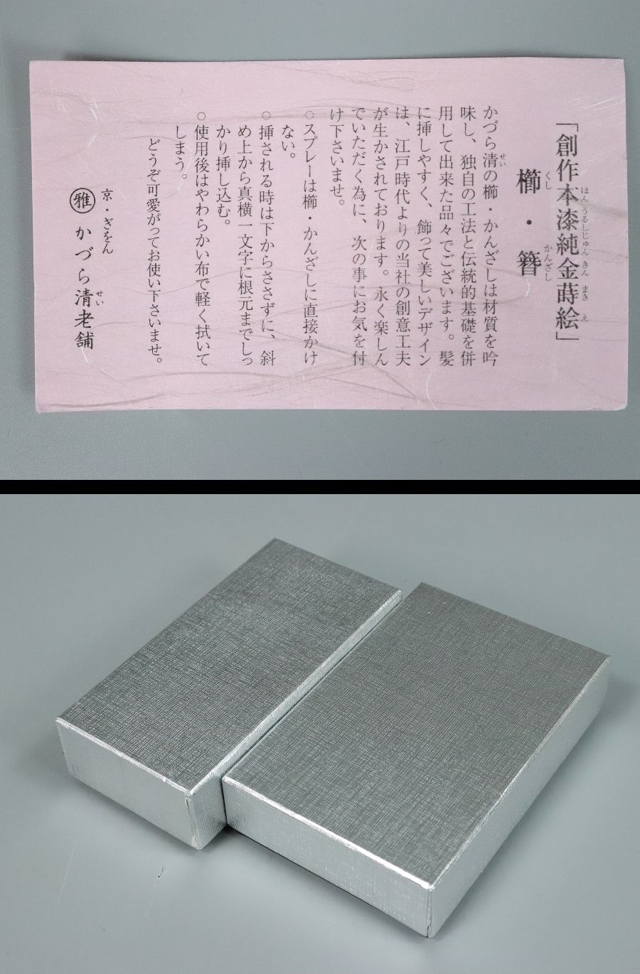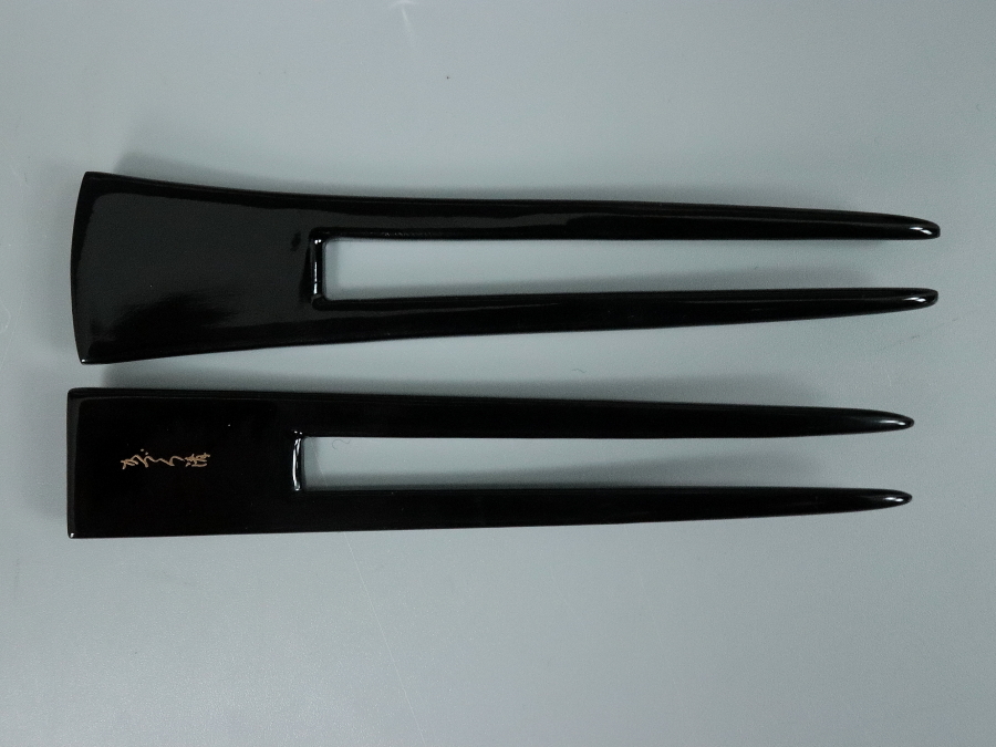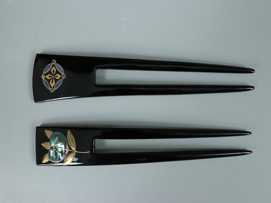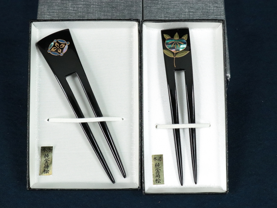12046■ 創作本漆純金蒔絵 かづら清老舗 簪 かんざし 二点 おまとめ ケース付き