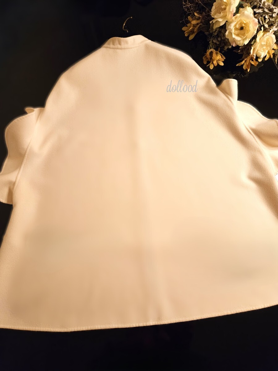 ◇ VALENTINO ヴァレンティノ フリル ケープ コート 42 6 アイボリー