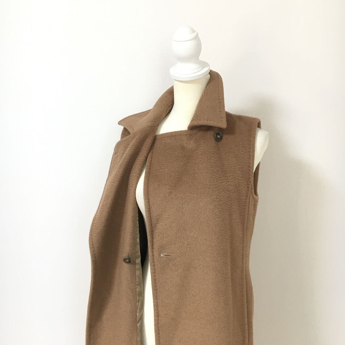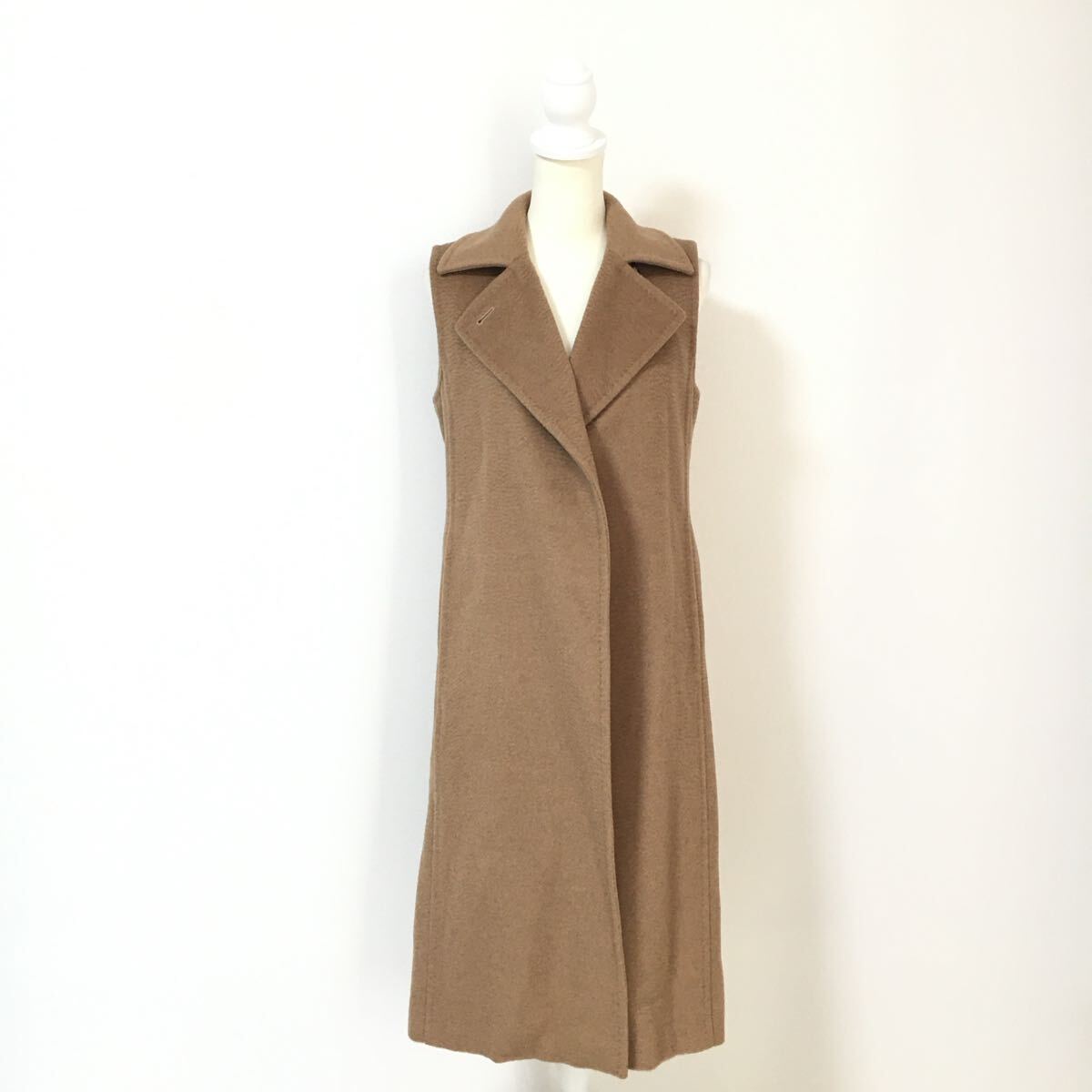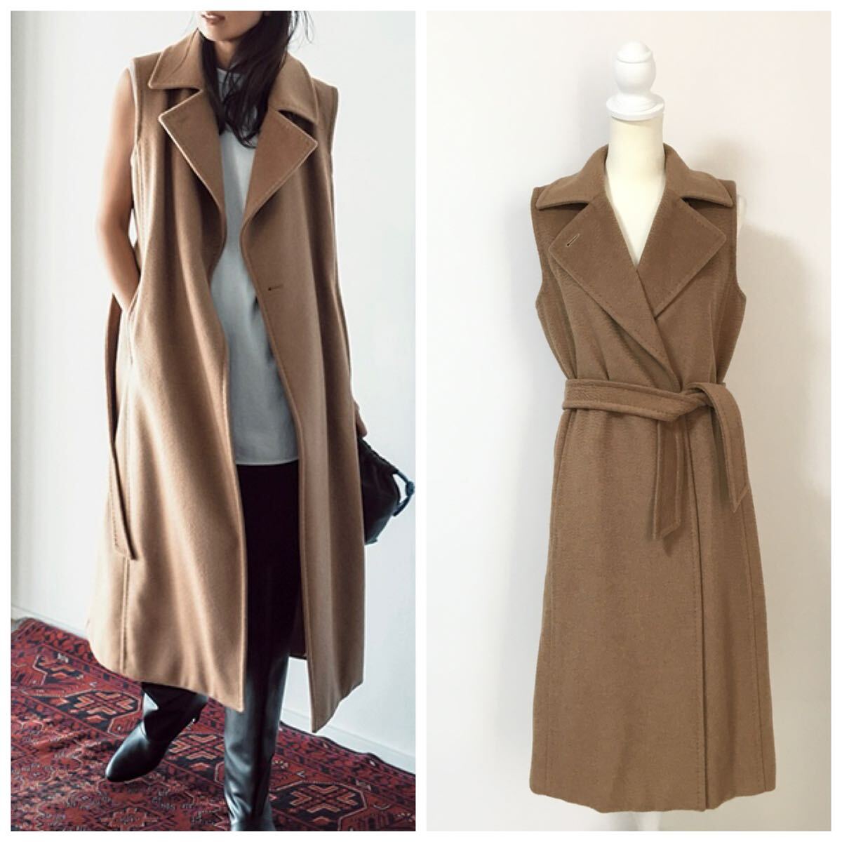 キャメル素材ならではの上品な光沢感が美しいジレは、端境期アウターとして最適。袖がないぶん動きやすくコーディネートの幅が広がります。