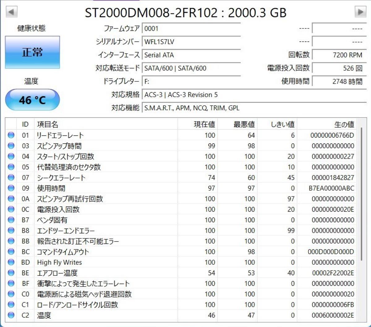 自宅PCでバックアップに使用していたHDDです。PC組み換えにより余剰となったため出品いたします。直前まで正常に動作していました。使用環境はペットなし、喫煙者なしでした。