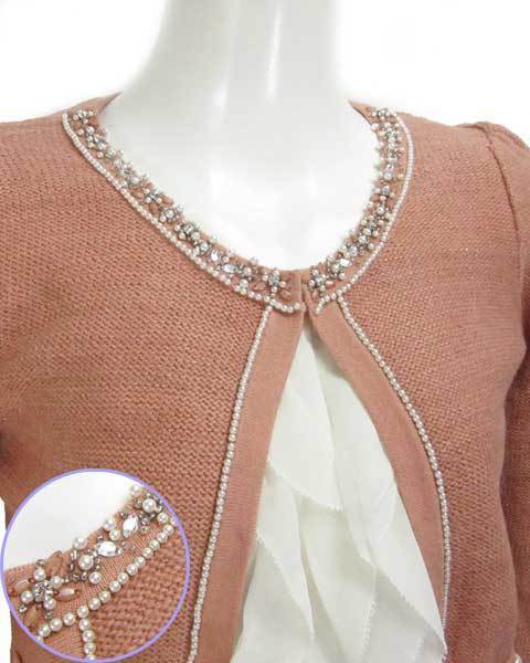 | コメント | ブラウスニットとカーディガンのアンサンブル。 単品使い、セットアップ使いが楽しめるお得感のある アイテムです。 女性らしいデザインで、お出かけスタイルやビジネスシーン などでお使い頂けます。 カーディガンのフロントはフックタイプになります。 |
