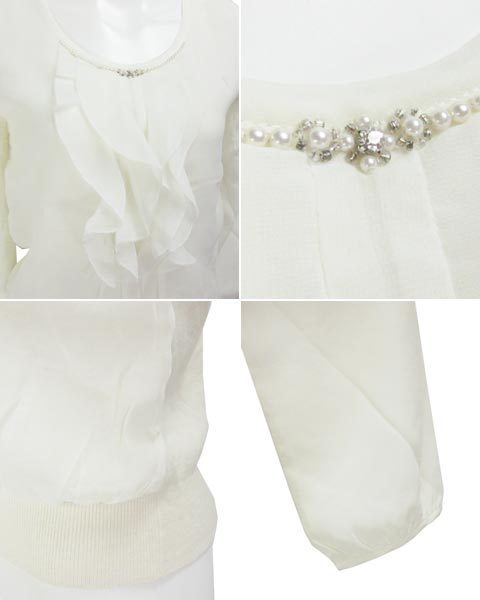 | 素材 | カーディガンアクリル49%ナイロン26%羊毛17%モヘア5%ポリエステル3% インナーアクリル50%毛31%ナイロン19%シフォン部分ポリエステル100% |