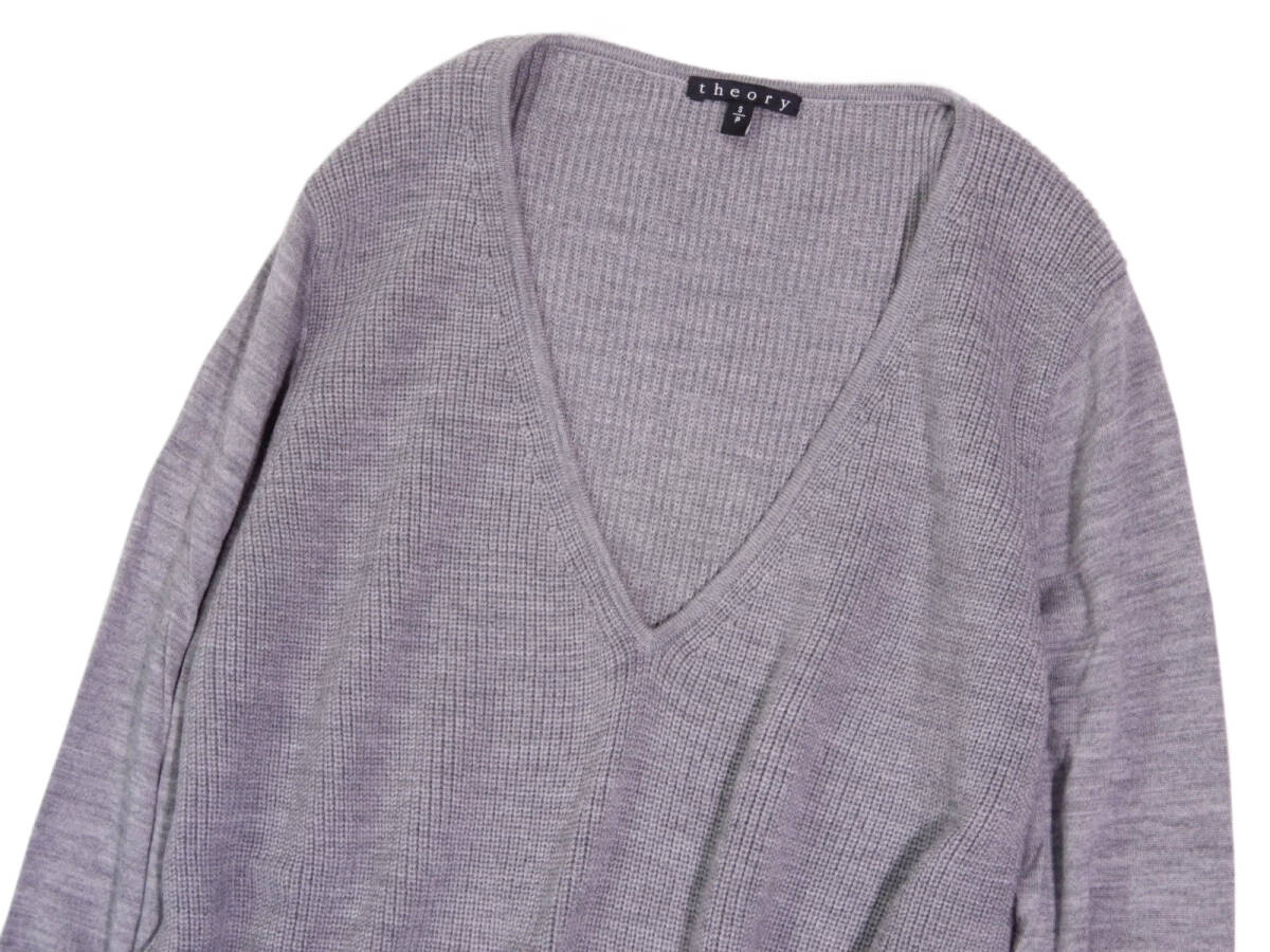 ウール100%の上質素材を使用した、theoryのVネックニットです。 細かな編み地で仕立てられており、ウール特有の暖かさはありながらも、すっきりとした軽やかな着心地が魅力。 デコルテを美しく見せるVネックデザインで、女性らしく上品な印象。 縦のラインを強調するシルエットで、自然にスタイルアップ効果も期待できます。 一枚着としてはもちろん、ジャケットやコートのインナーにも使いやすく、 オン・オフ問わず幅広いシーンで活躍する、theoryらしい洗練されたベーシックニットです。 ◇状態 :目立った傷や汚れなし ◇仕様 裏地 : なし 伸縮性 : あり ◇サイズ表記 : S ◇実寸 :肩幅35・身幅44・着丈70・袖丈61㎝位 *素人採寸ですので多少の誤差はご容赦ください ◇素材 :毛100% ◇カラー : グレー * 実物に近いように撮影しておりますが、各御家庭でのモニター環境等により、お色など見え方が異なる事がある事をご理解の上、入札をお願い致します。 | ||