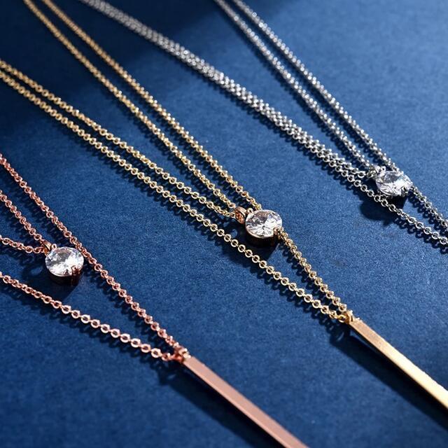 ストレート+大粒ジルコニアの綺麗ネックレスです♪