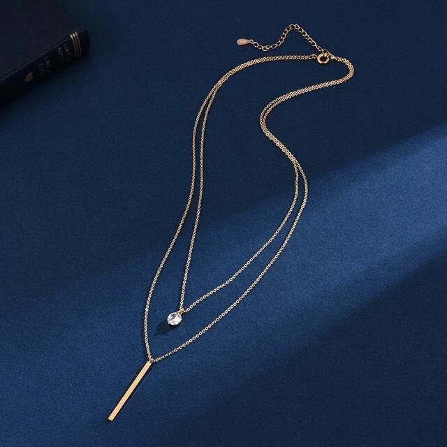 2連の異なる長さのコンビチェーンが女性らしさを高めるネックレスです^ ^
