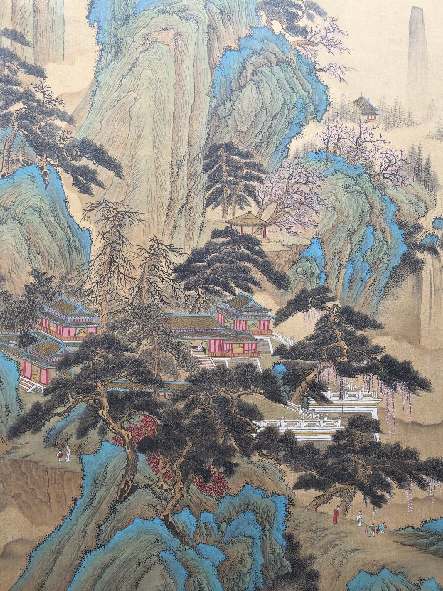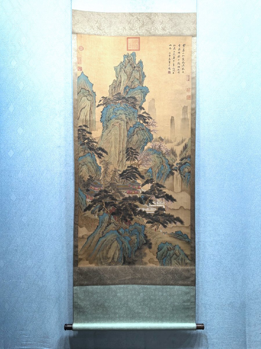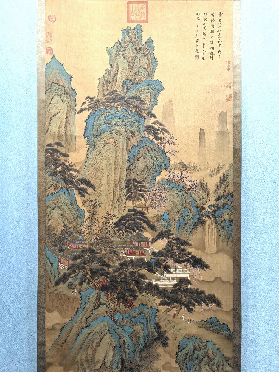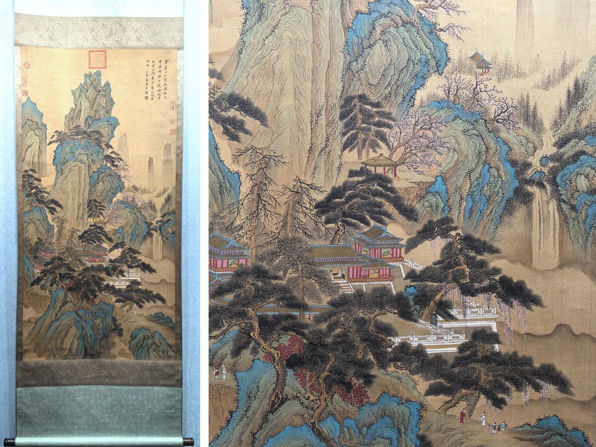 【安】中国宋時代画家「王希孟書」絹本「山水楼閣図」掛軸 中国画 墨寶妙品 中国書道 古美術 370 サイズ(約寸) |