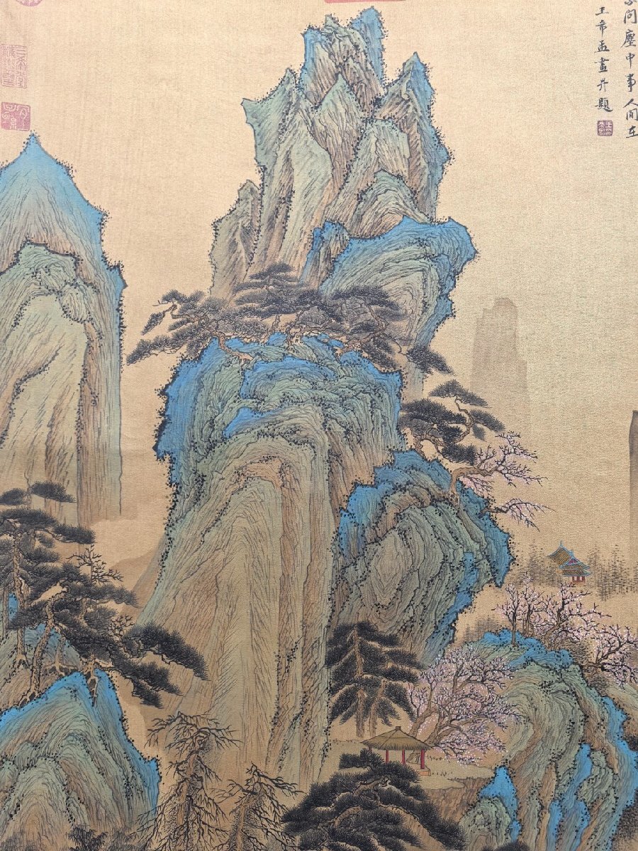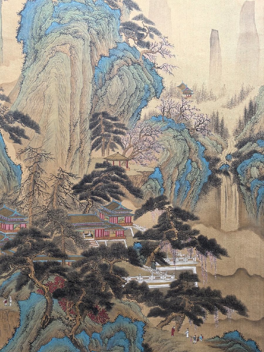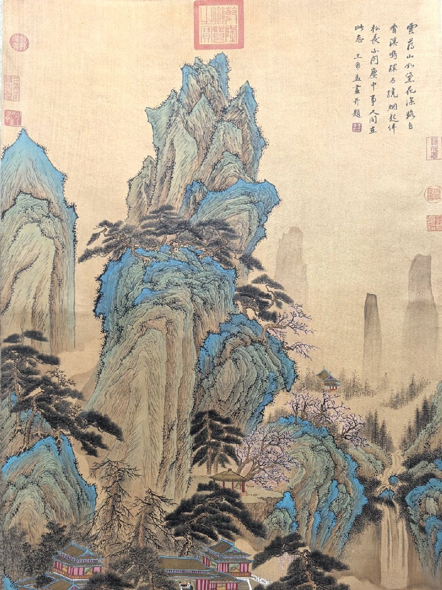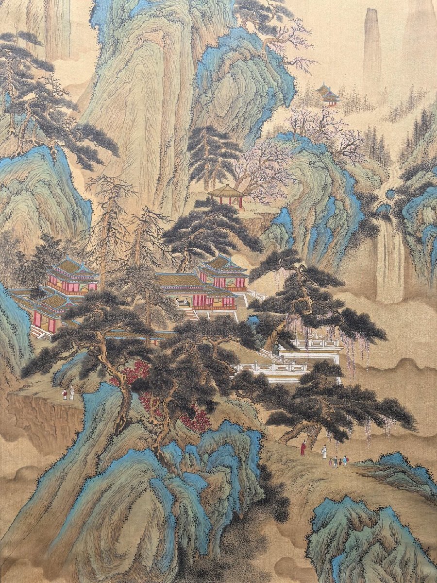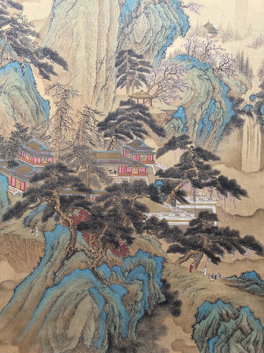 【安】中国宋時代画家「王希孟書」絹本「山水楼閣図」掛軸 中国画 墨寶妙品 中国書道 古美術 370 サイズ(約寸) |