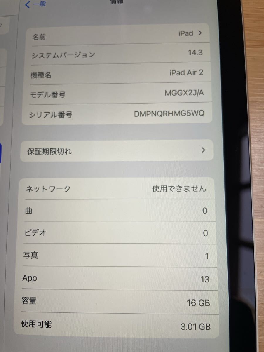 型番:MGH72J/A iPad Air 2 wi-fi cellular 16GB silver