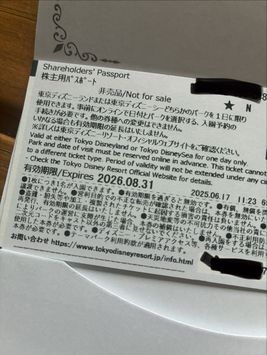 TDR 東京ディズニーリゾート 株主優待パークチケット1枚の値段です(有効期限 : 2026年8月31日)