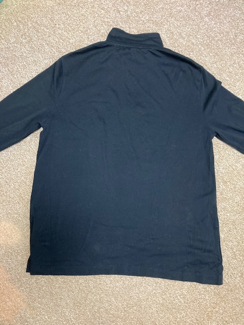のハーフジップカットソーです、サイズXL実寸平置きで 肩幅45cm 身幅56cm 着丈78cm袖丈64㎝、色はブラックで素材はコットン 100%です