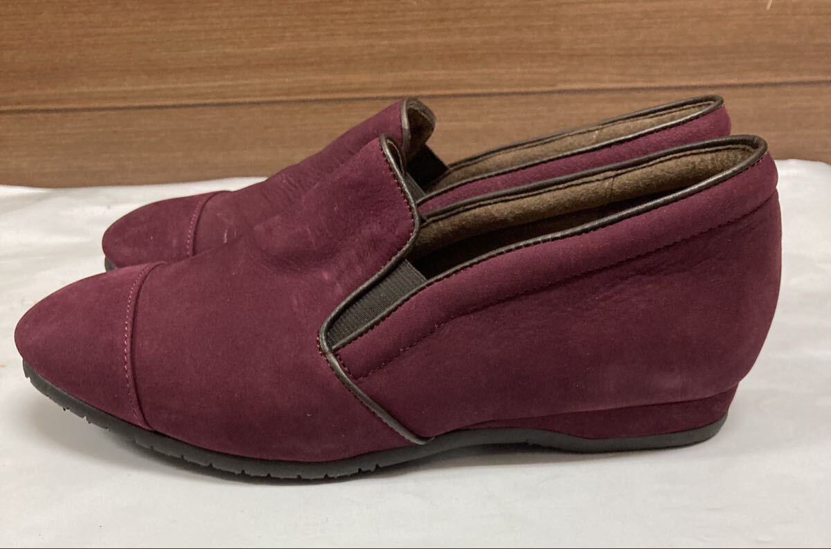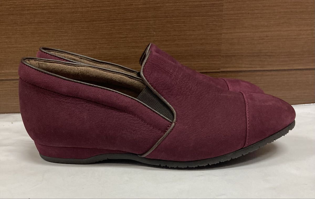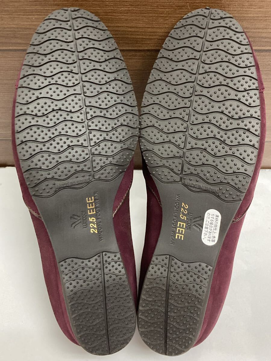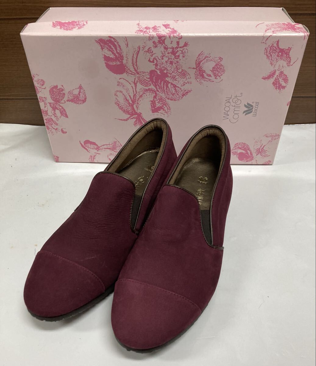 未使用 ♪ Wacoal ワコール comfoot ローヒール スリッポン ウォーキングシューズ 22.5cm EEE えんじ色 パンプス 婦人靴 日本製