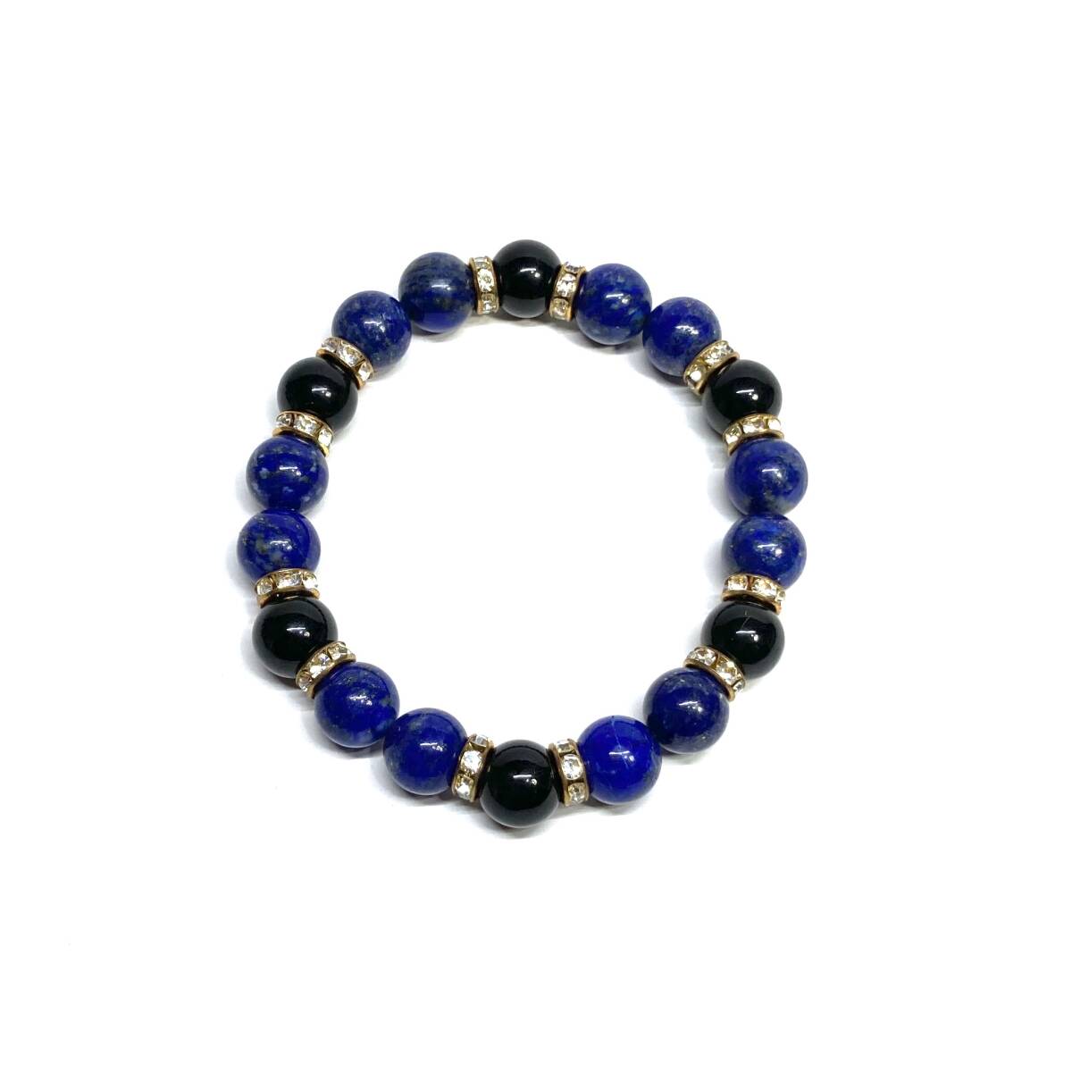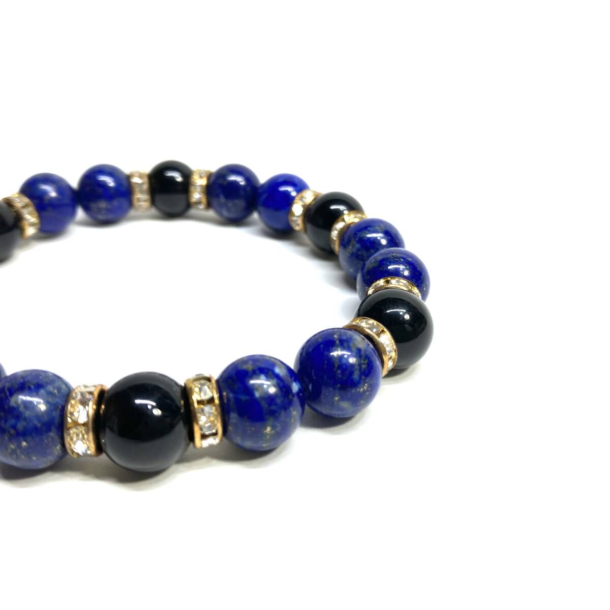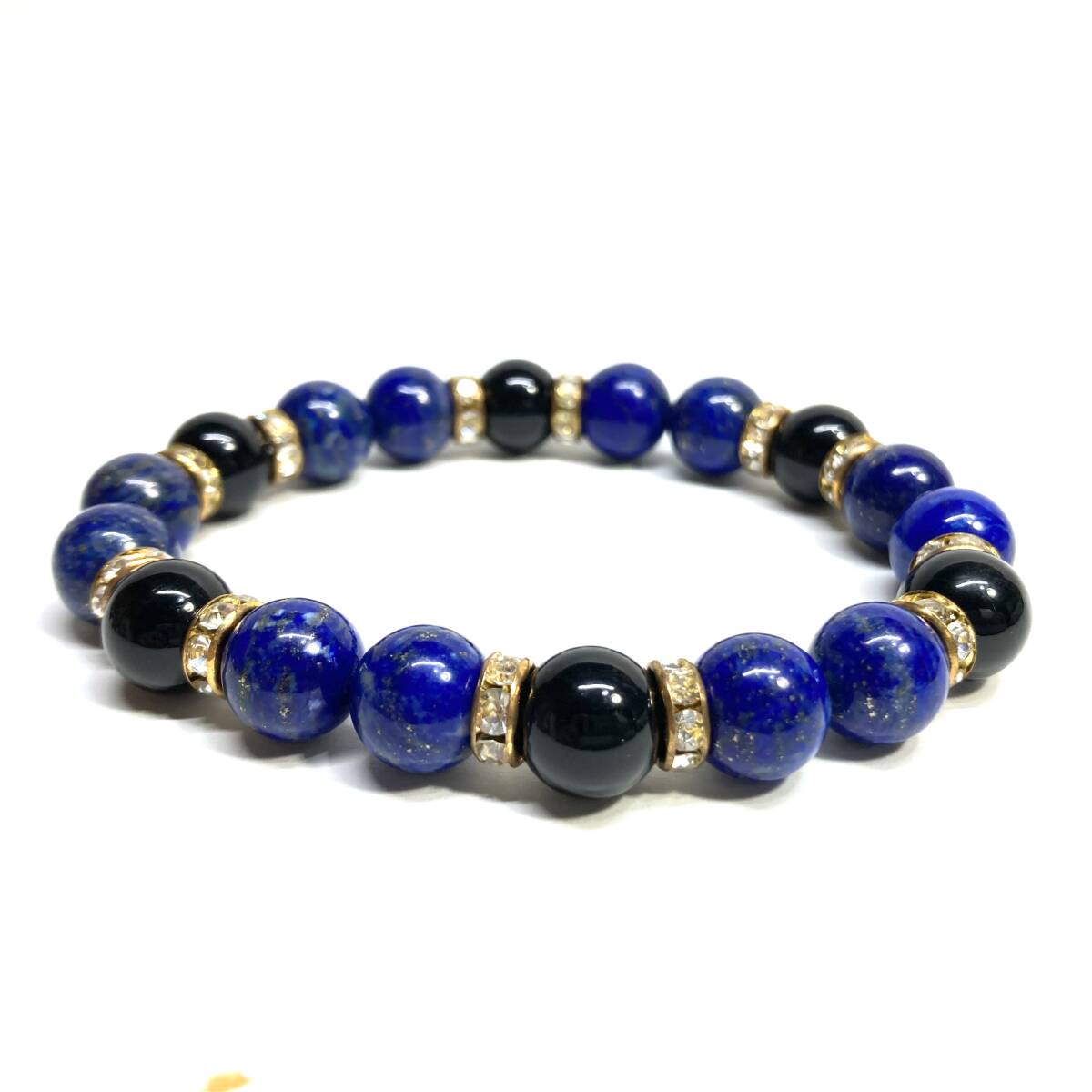ラピスラズリ&オニキス パワーストーン ブレスレット 天然石ブレス (ゴールド) 10mm メンズ・レディース 幸運 仕事運 学業運 ☆