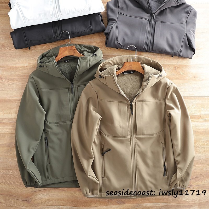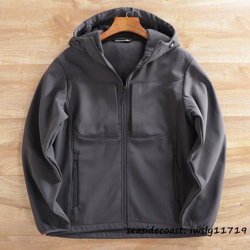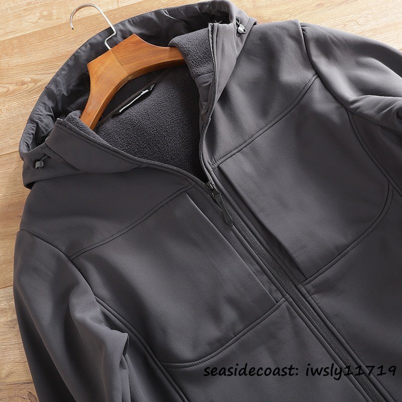高機能◆メンズ ソフトシェル ジャケット フード付き フリースジャケット 裏起毛 保温 防風防寒 マウンテンパーカ アウトドア グレー 2XL