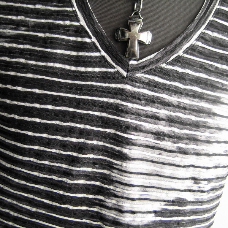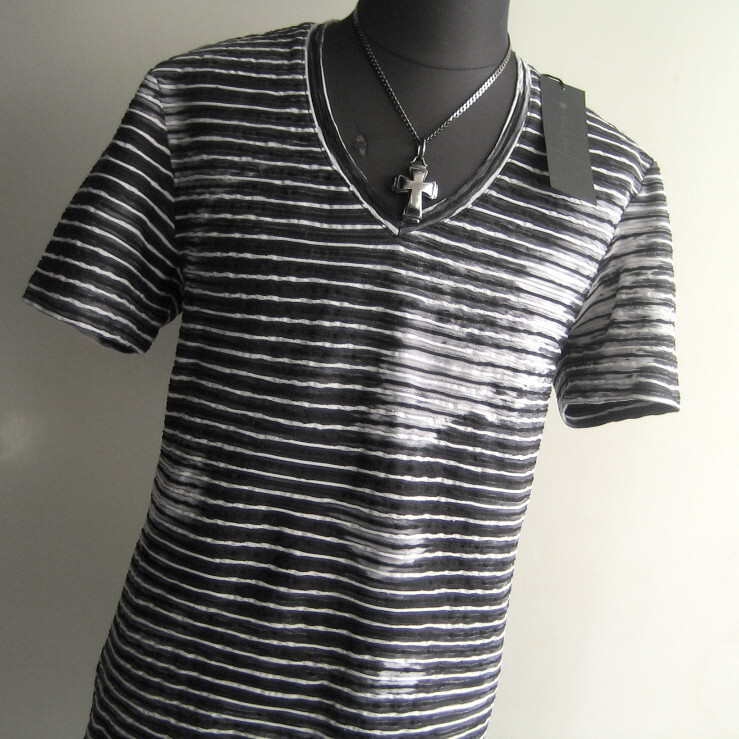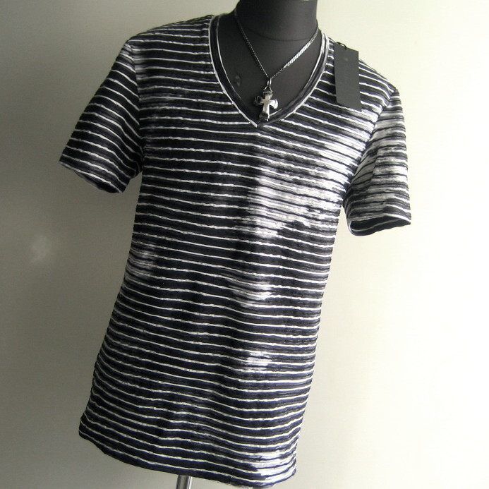 ■MADE IN ITALYのムラ染めボーダージャージーを用いたVネックカットソー