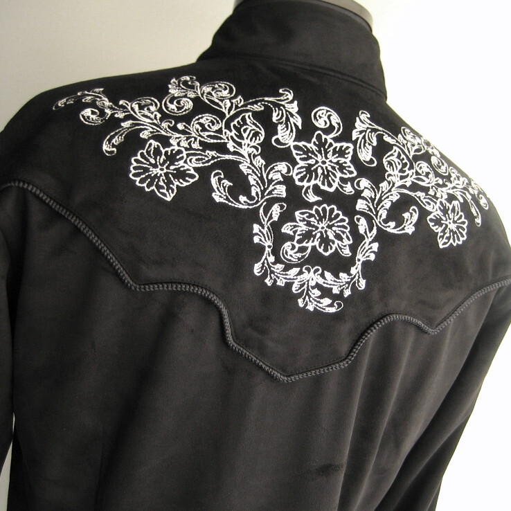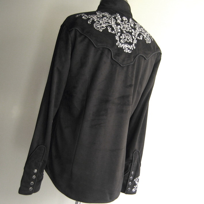 ■ポリエステルスエードジャージーで仕立てた刺繍ウエスタンシャツ