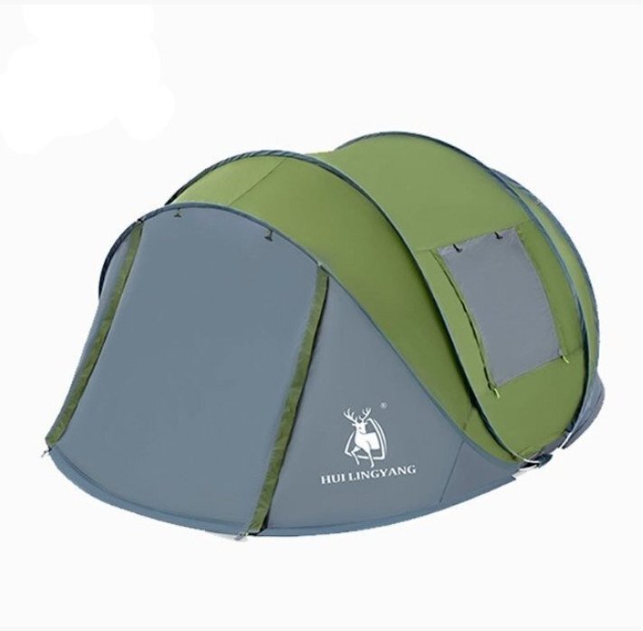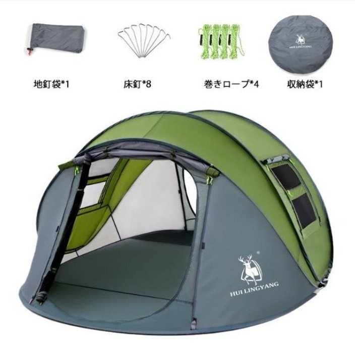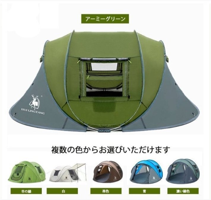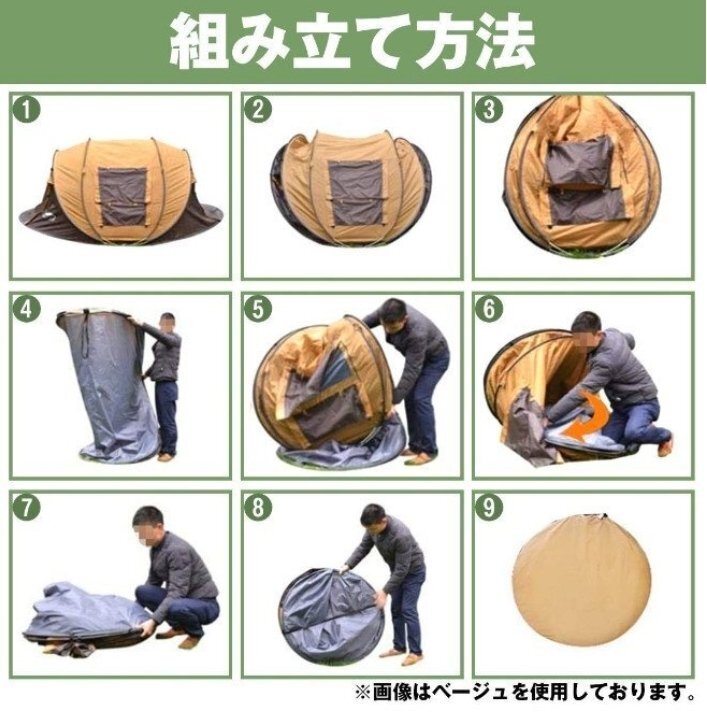 ■ 3~4人用の四季兼用テントで、設営不要の自動テントで雨にも強く、折りたたみも可能です。