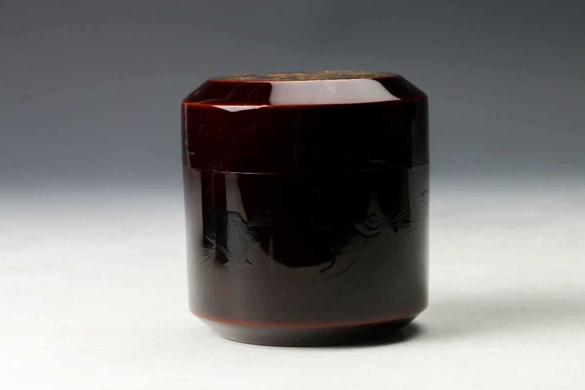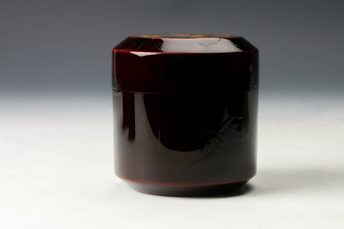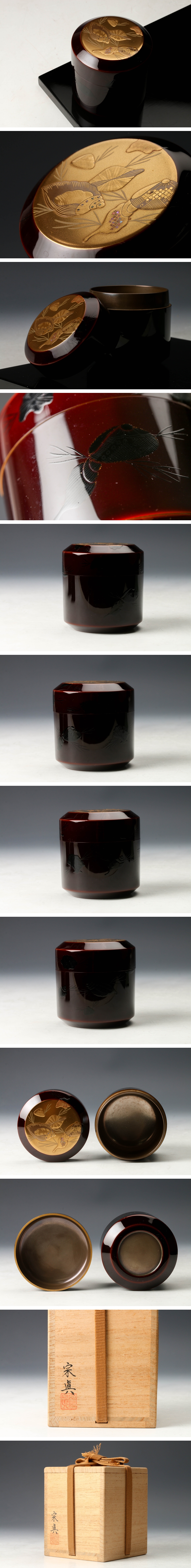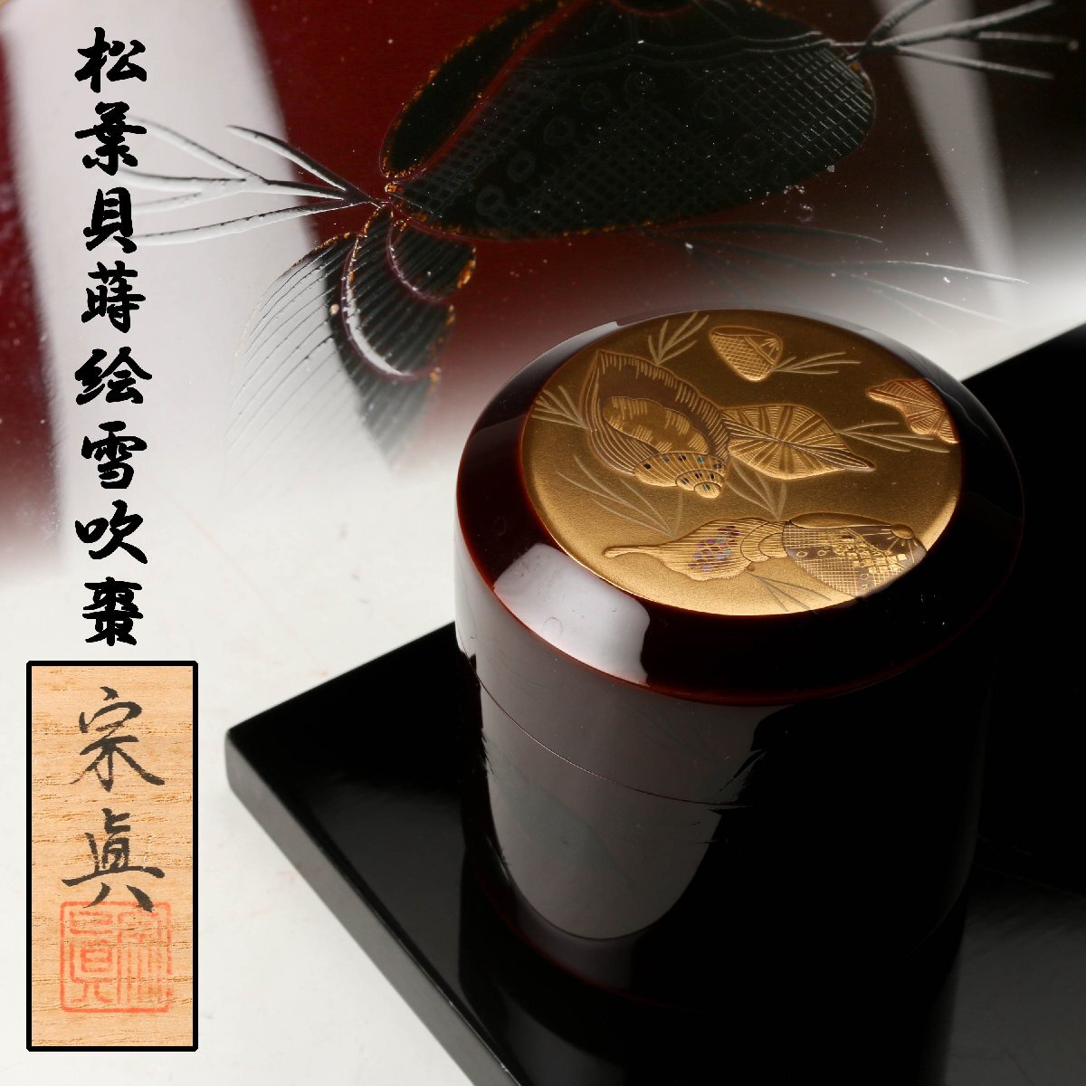 【佳香】北浜宗貴 松葉貝蒔絵雪吹棗 内銀溜 螺鈿 共箱 茶道具 本物保証