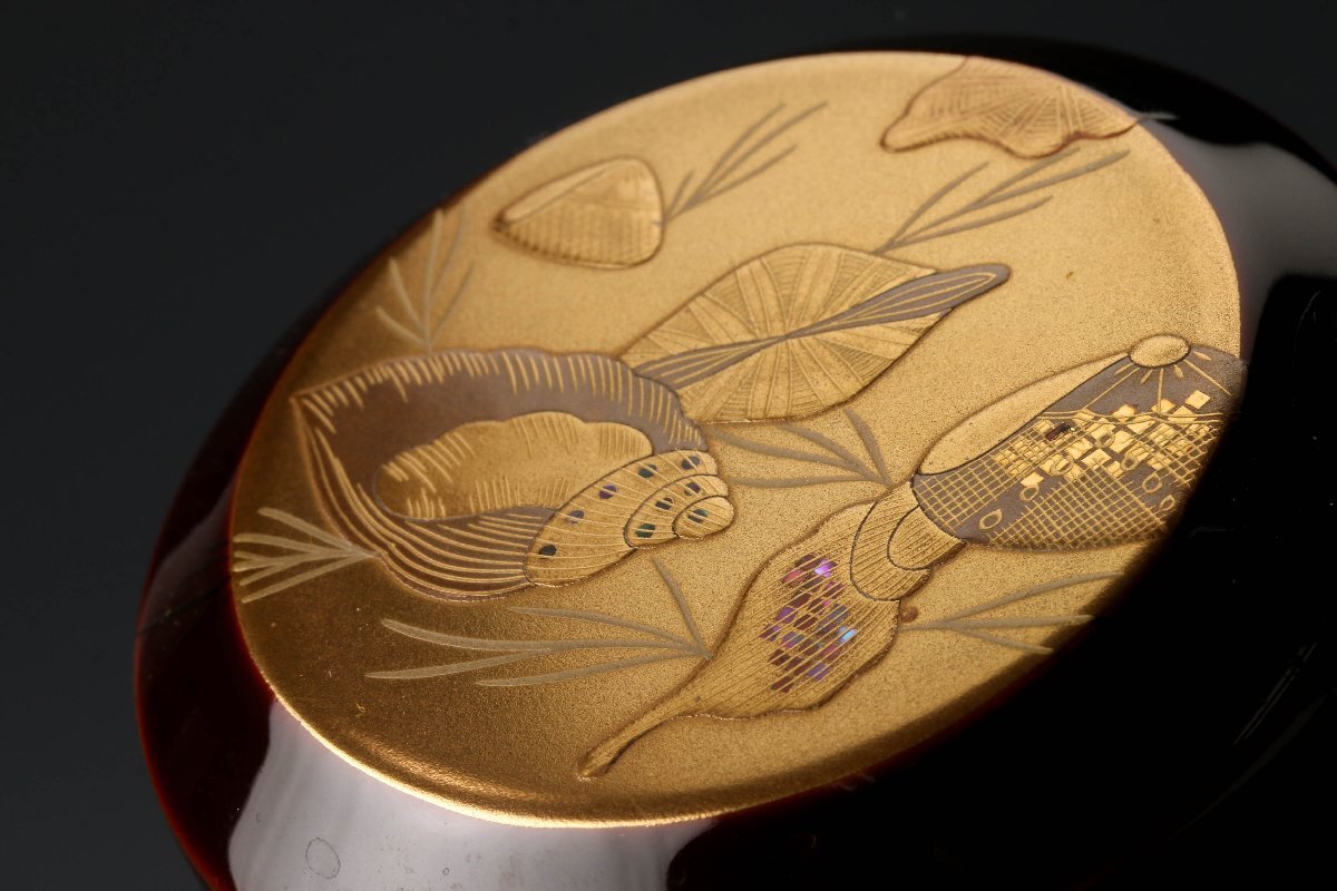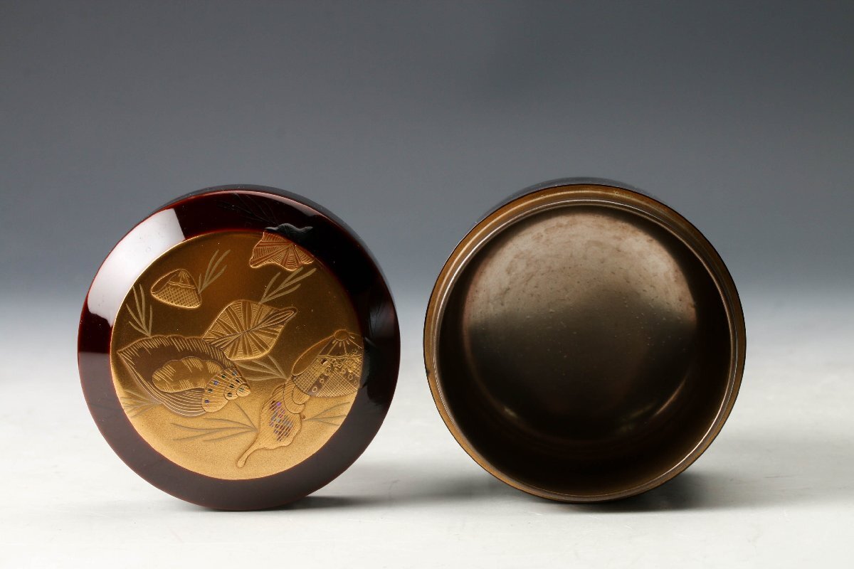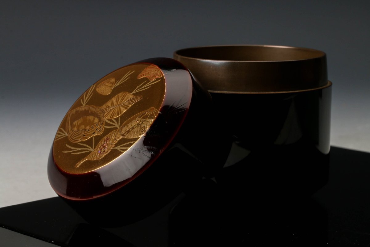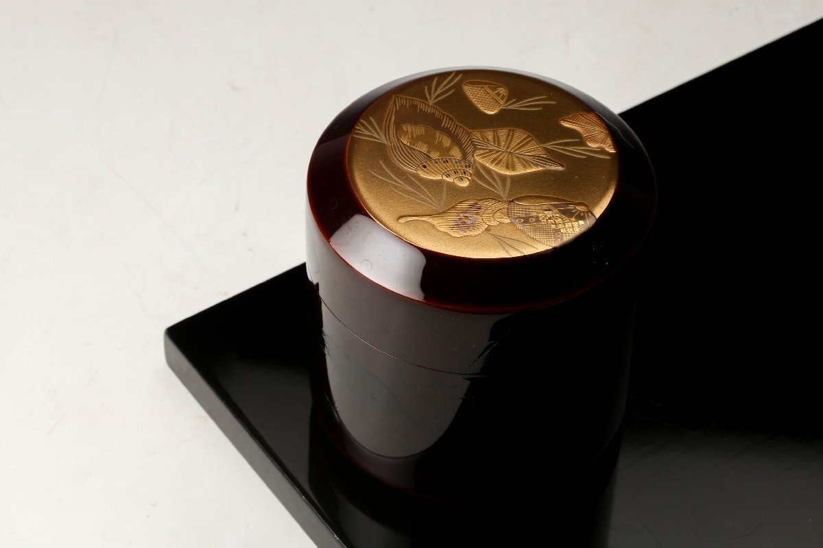 【佳香】北浜宗貴 松葉貝蒔絵雪吹棗 内銀溜 螺鈿 共箱 茶道具 本物保証