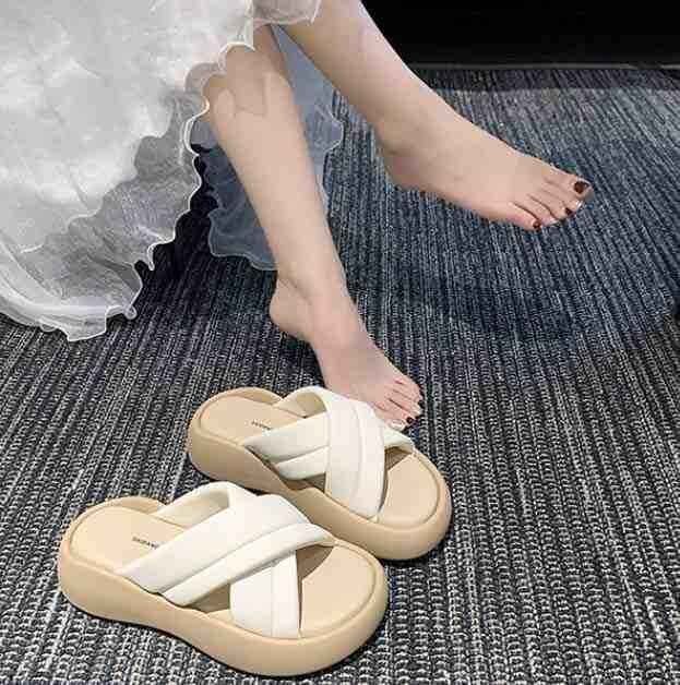 ・柔らかく足を包み込んでくれる太めのクロスベルト。