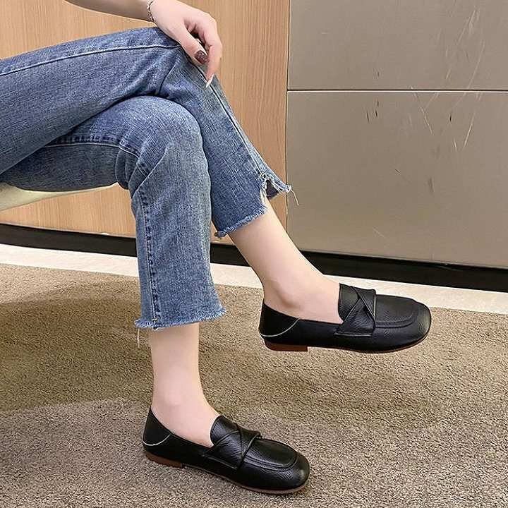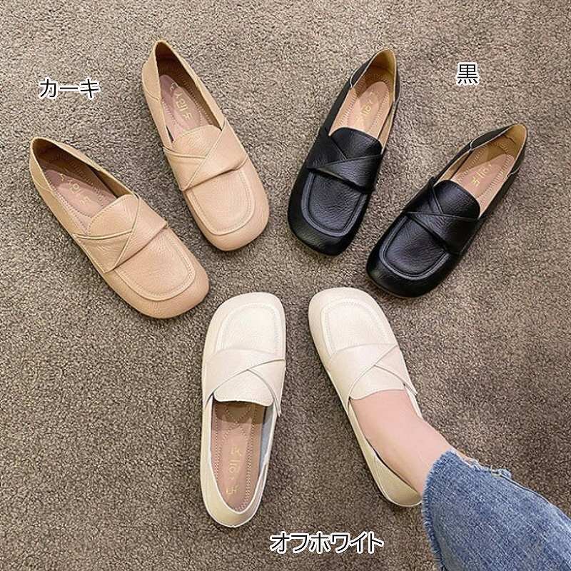 ・幅広のスクエアトゥで窮屈感なくゆったり履けます。