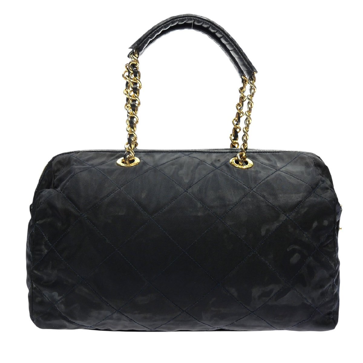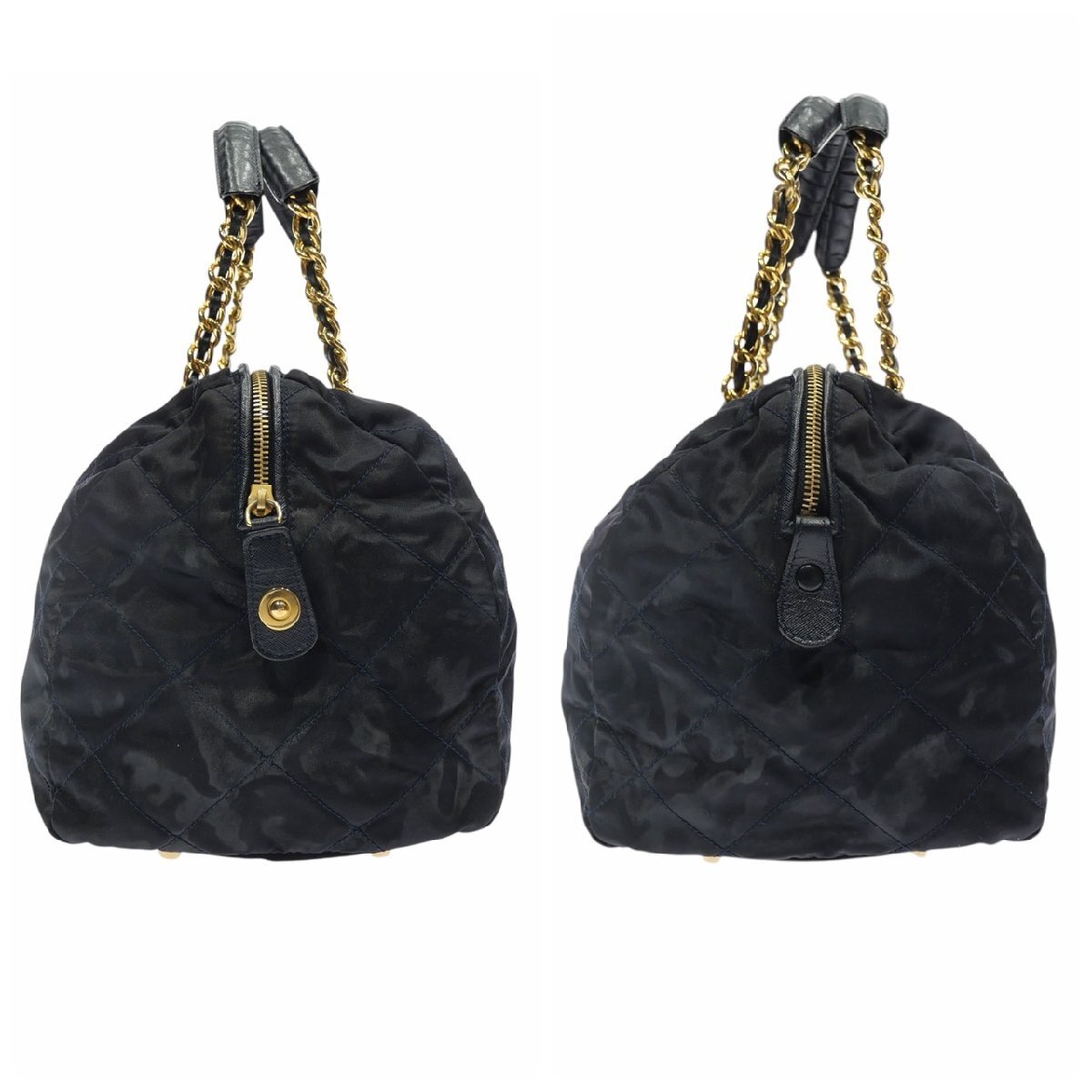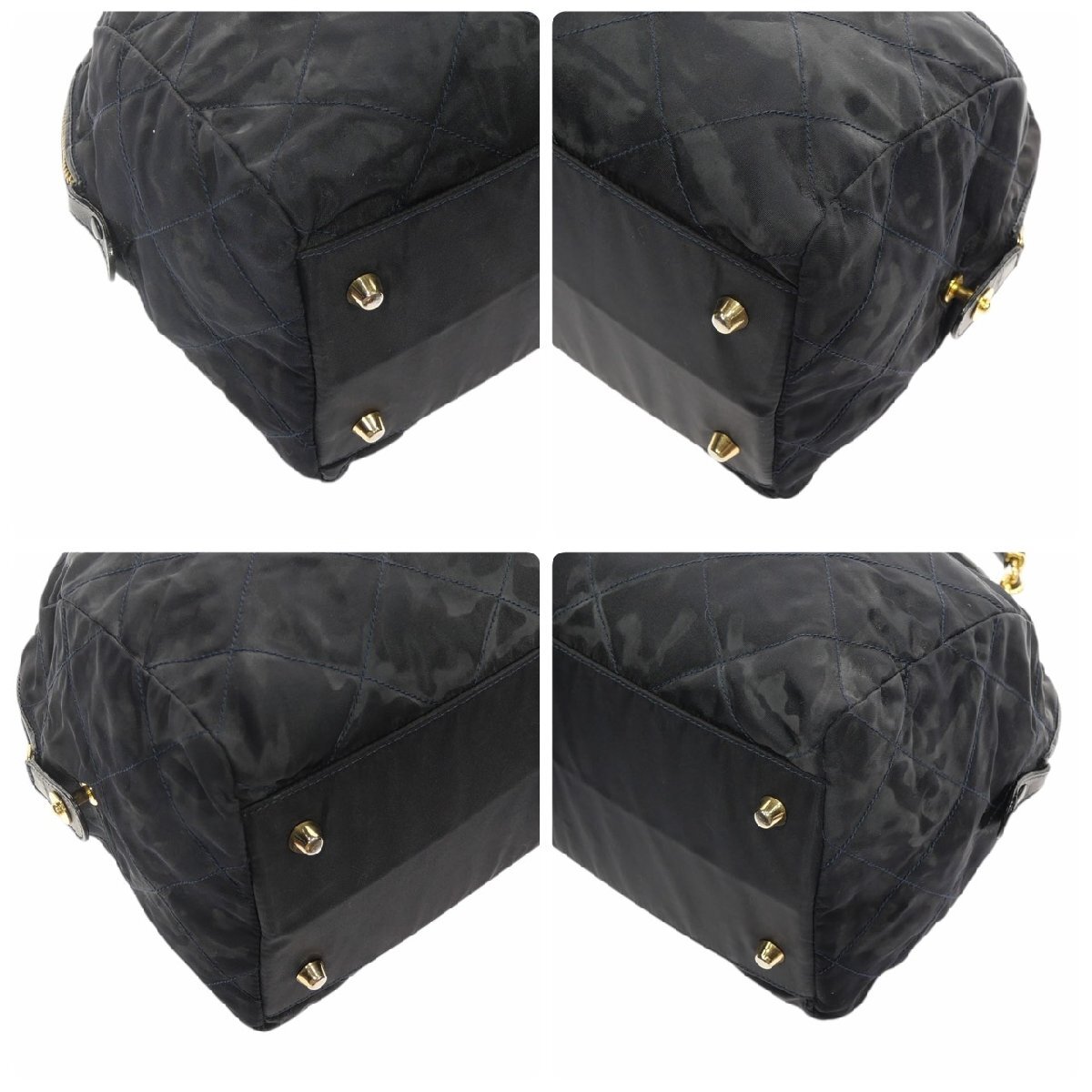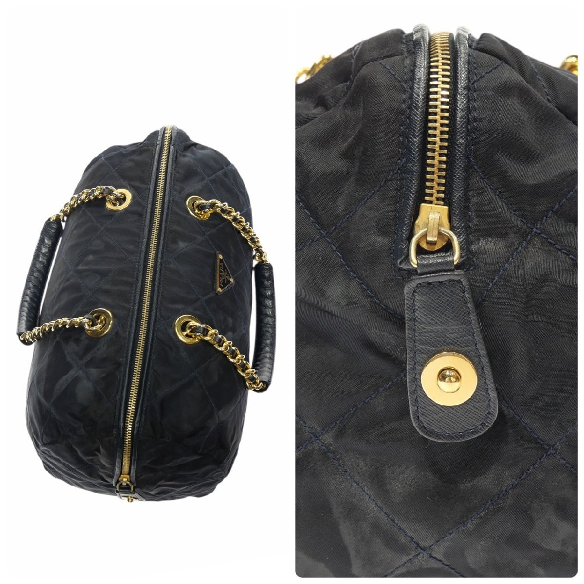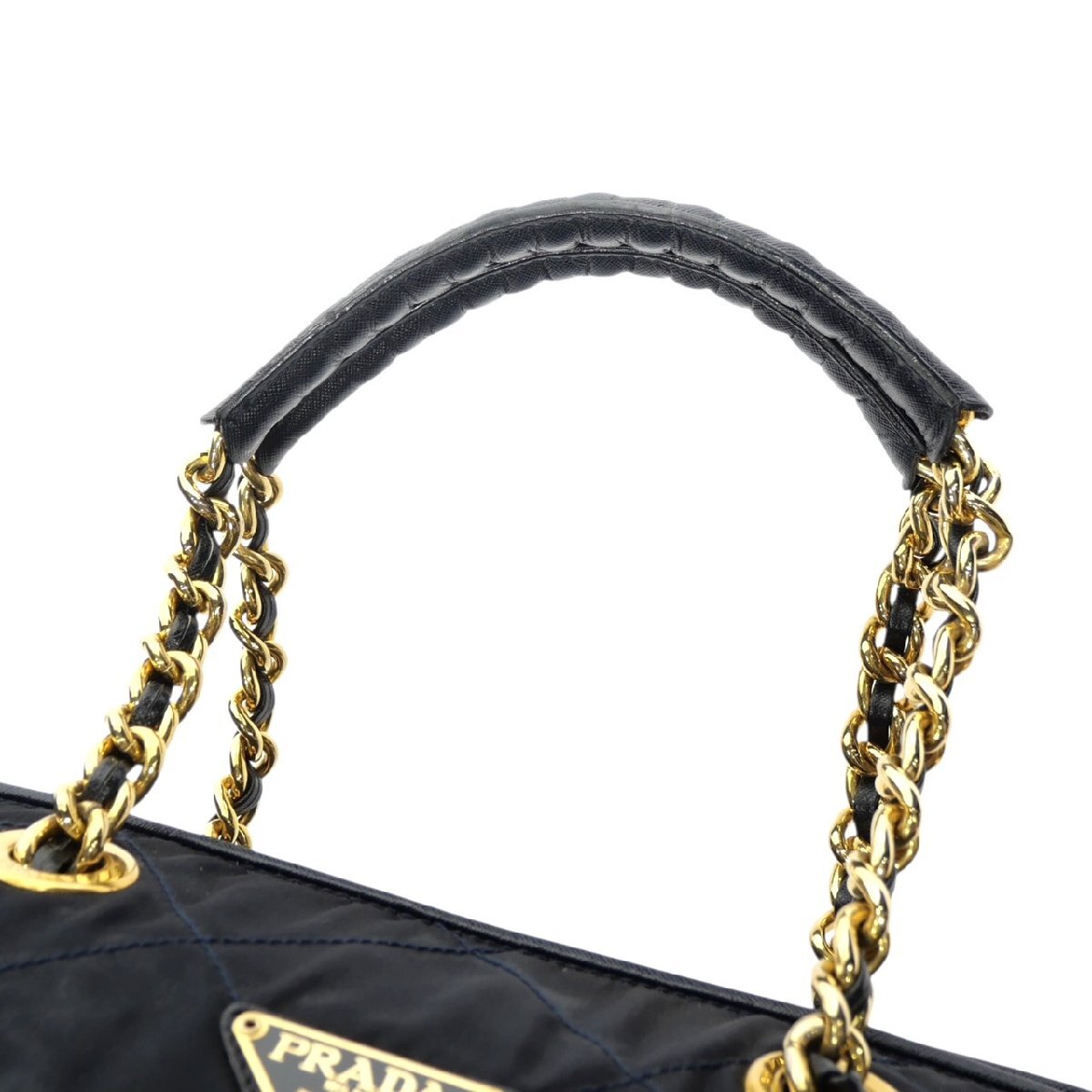 1円スタート PRADA プラダ ナイロン ハンドバッグ 三角ロゴプレート キルティング ゴールドチェーン ボストンバッグ ネイビー レディース