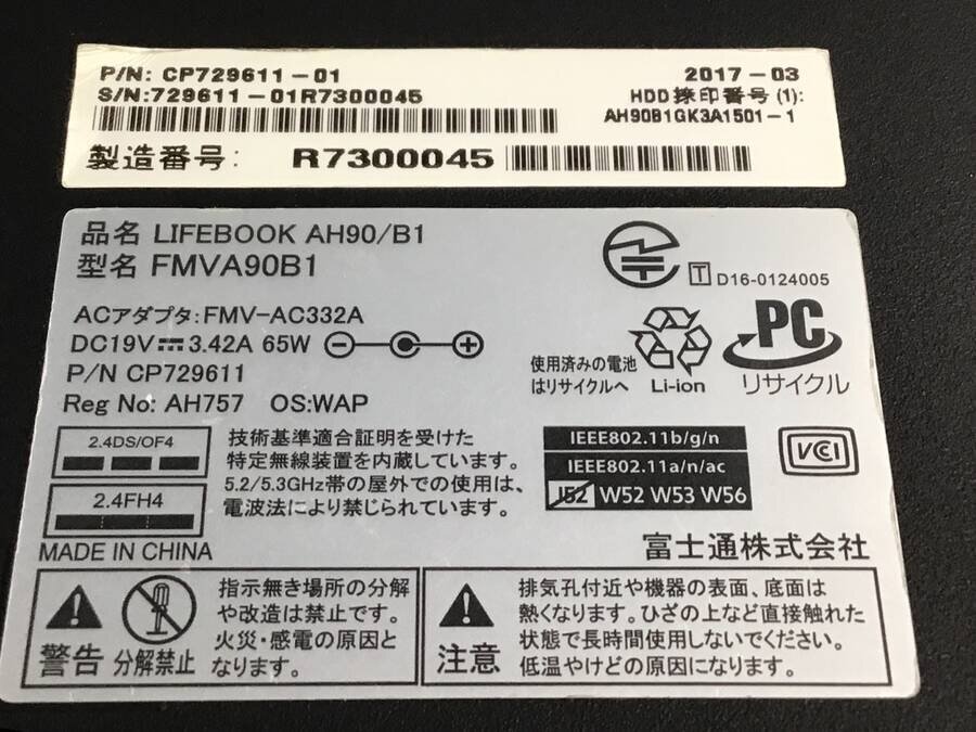 FUJITSU FMVA90B1 LIFEBOOK AH90/B1 Core i7 7700HQ 2.80GHz 8GB 1000GB■一部保証品