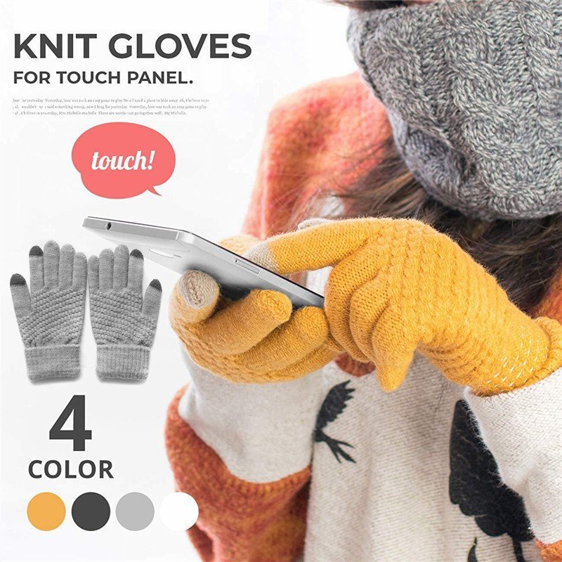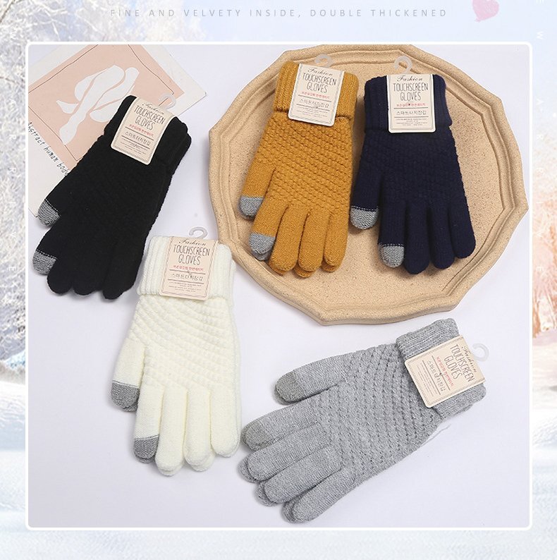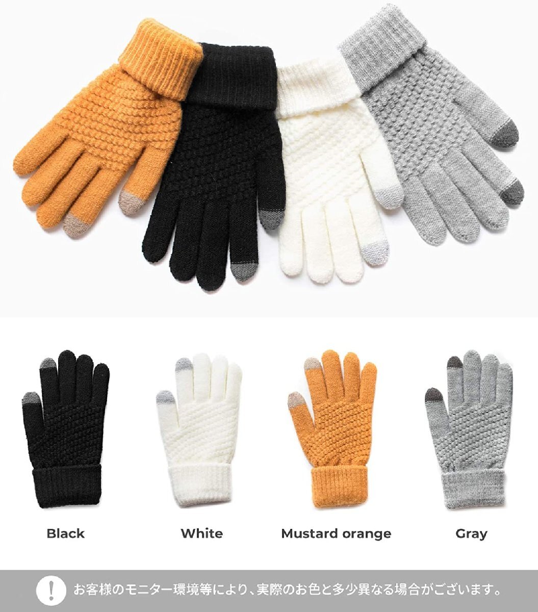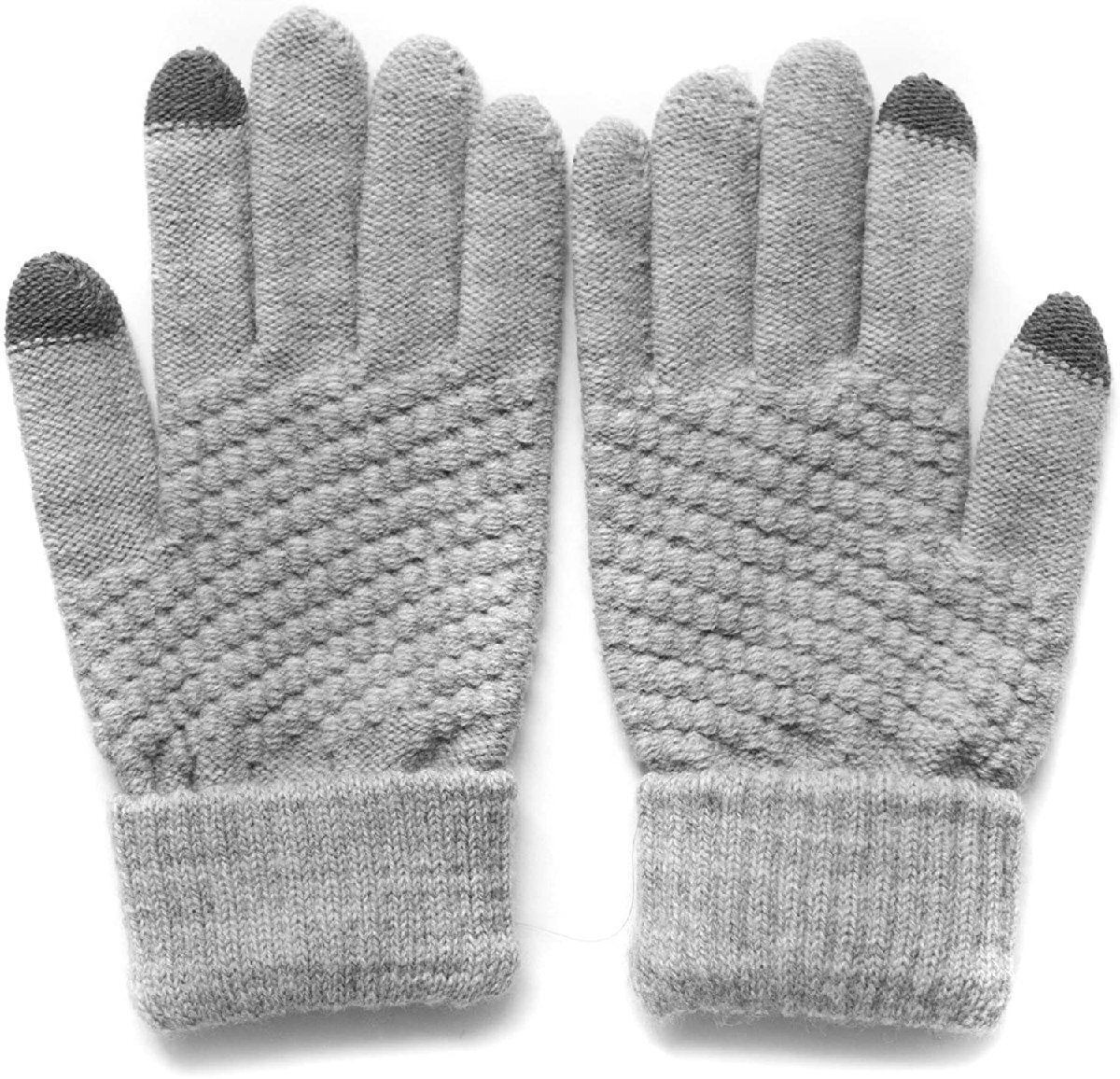 ニット手袋 スマホ対応 手袋 ブロック編み レディース フリーサイズ 手袋 レディース 裏起毛 タッチパネル対応 防寒-グレー