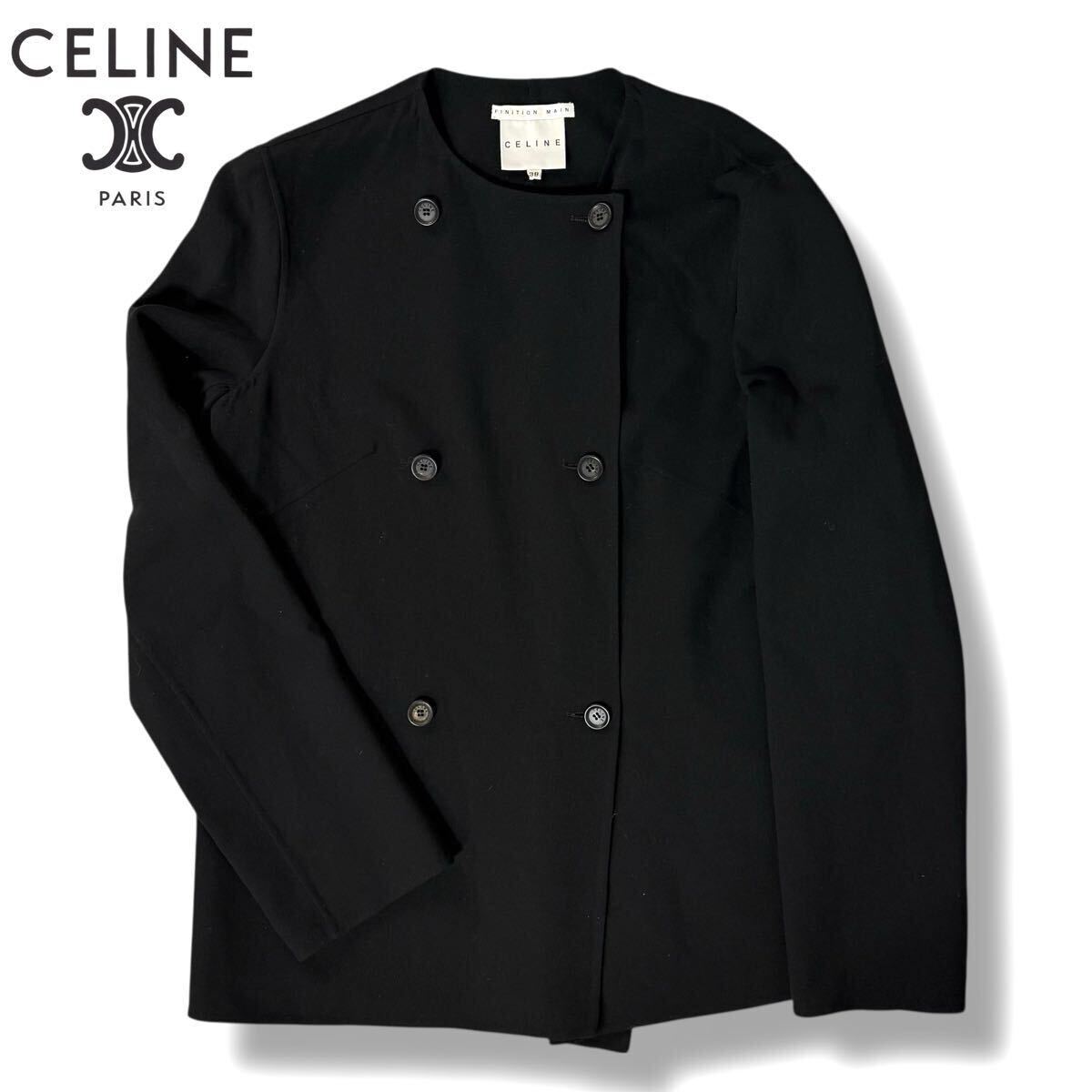 | 【美品】CELINE セリーヌ ウール ダブル ノーカラー ジャケット カーディガン ビジネス ヴィンテージ ブラック 38サイズ フランス製 |
