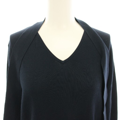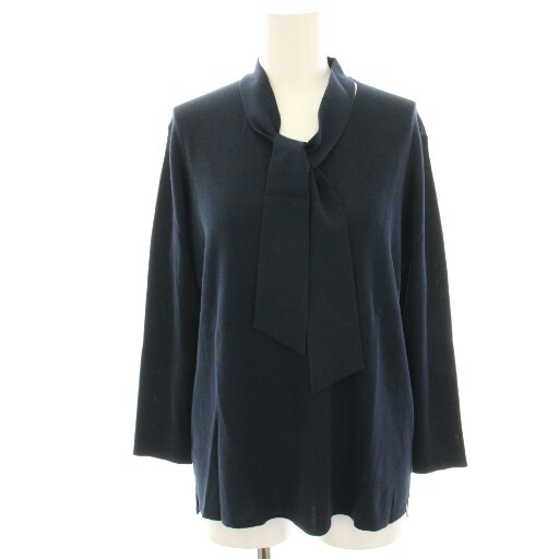 セオリーリュクス theory luxe ニット カットソー 長袖 Vネック ボウタイ 38 紺 ネイビー /HN レディース