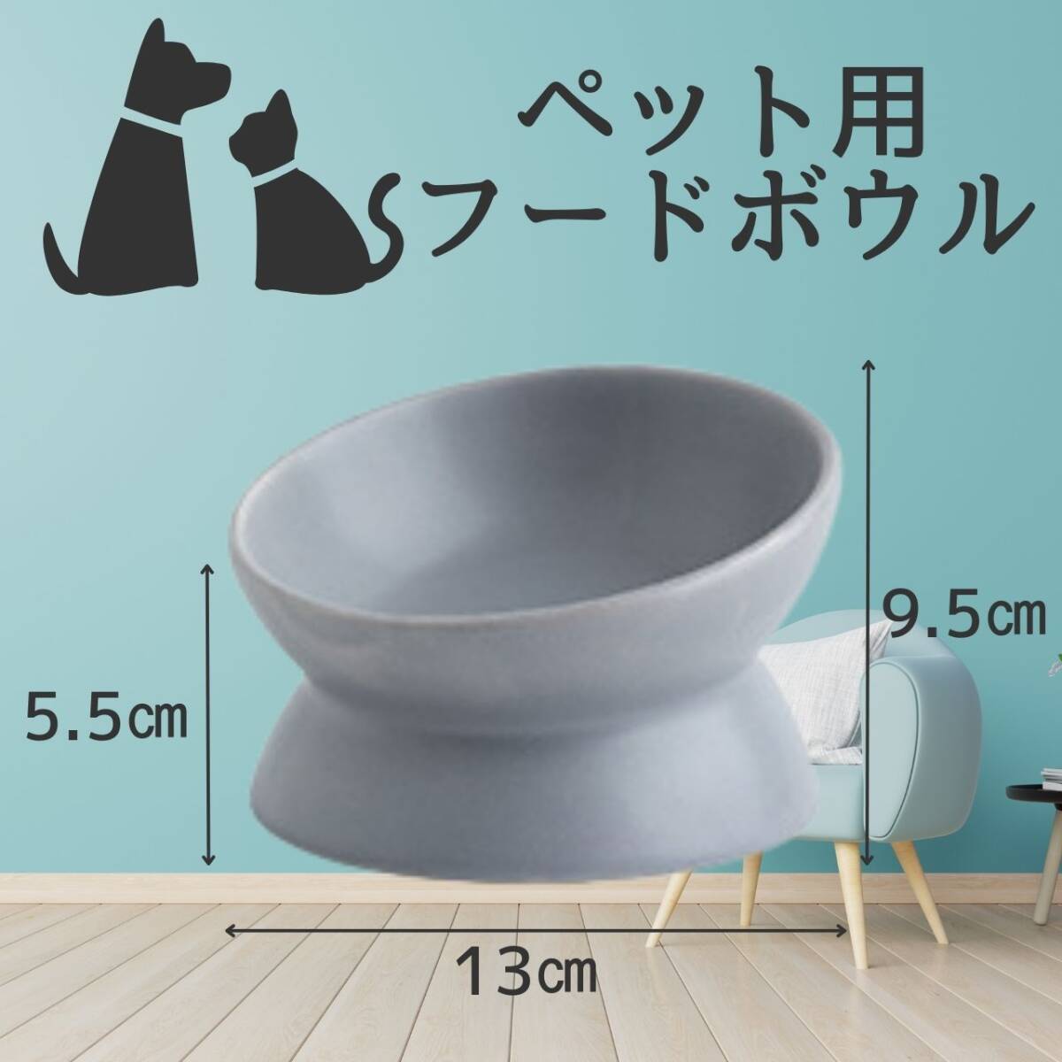 小 フードボウル 灰 エサ台 犬猫 グレー 餌皿 ペット用 陶器 おしゃれ