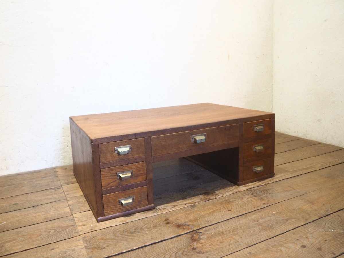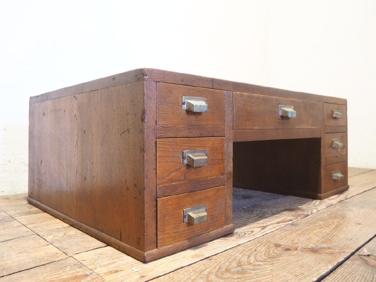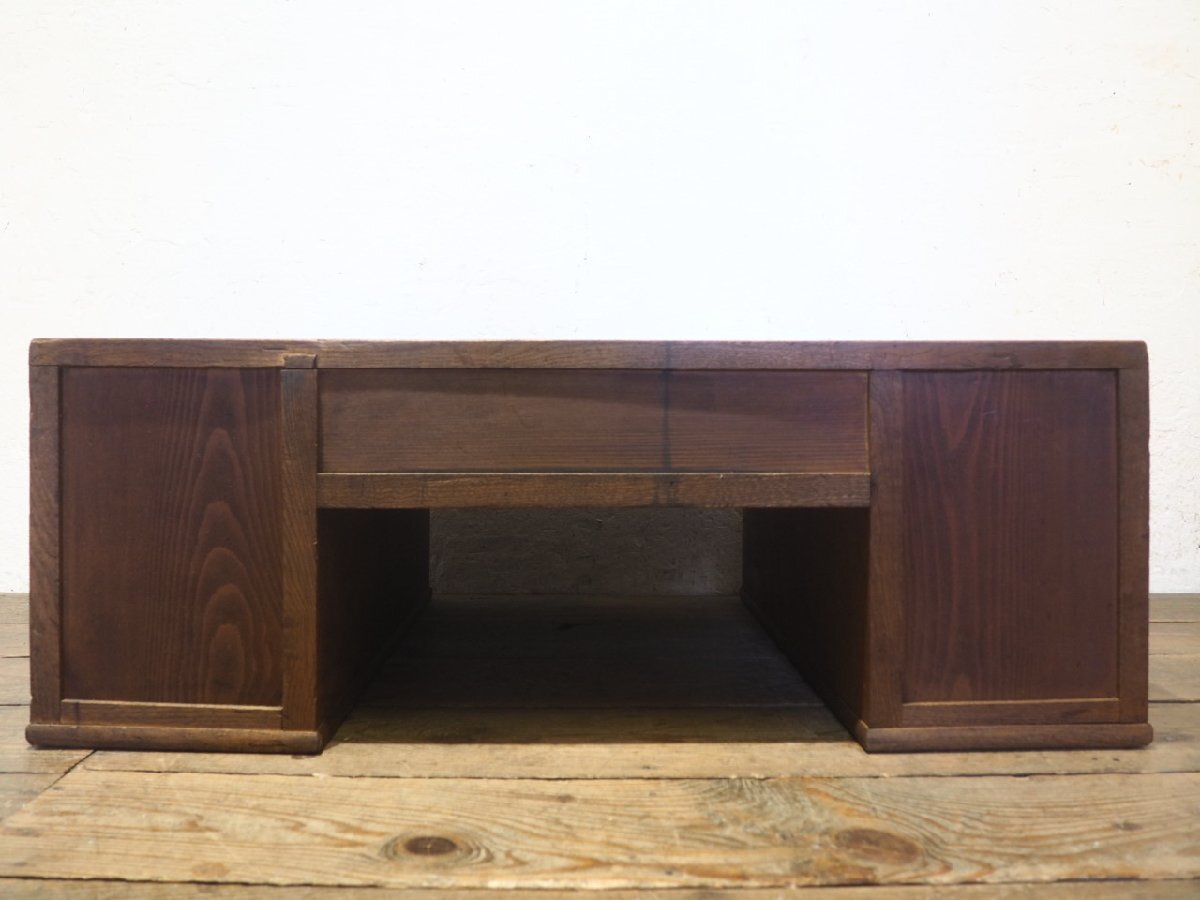 タX1422◆天板W92cm×D62cm◆ロータイプのレトロな古い木製片袖机◆ローテーブル 学習机 文机 ちゃぶ台 引き出し 収納棚 ビンテージL松