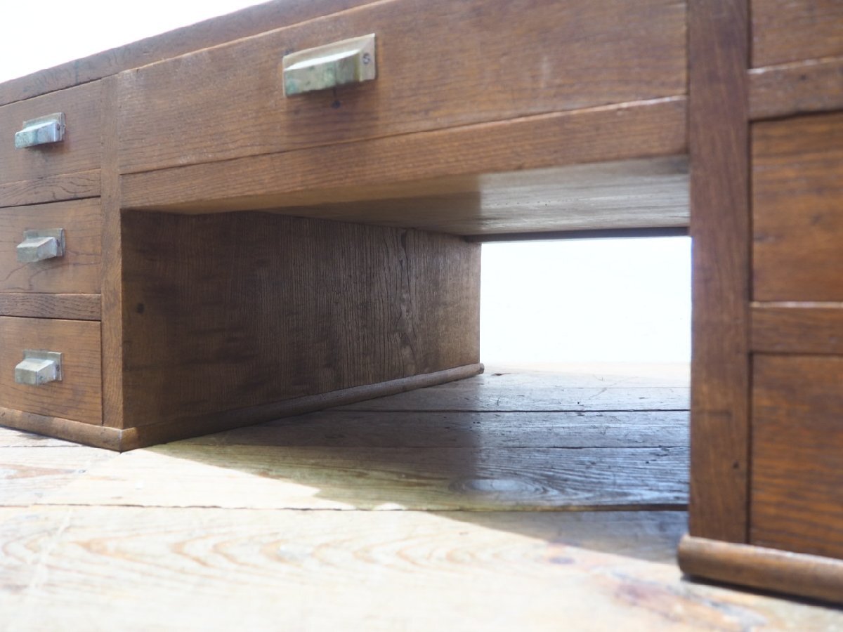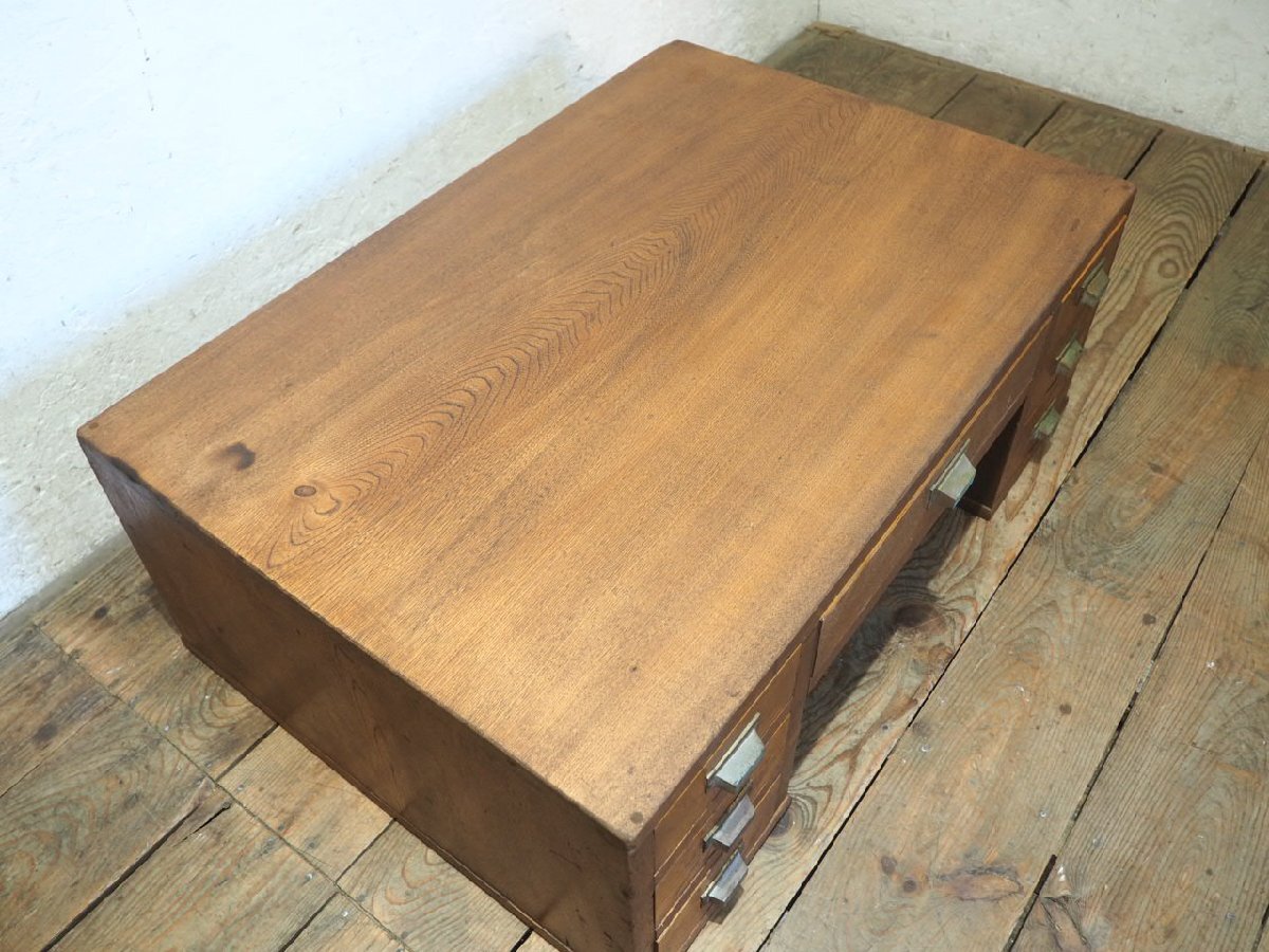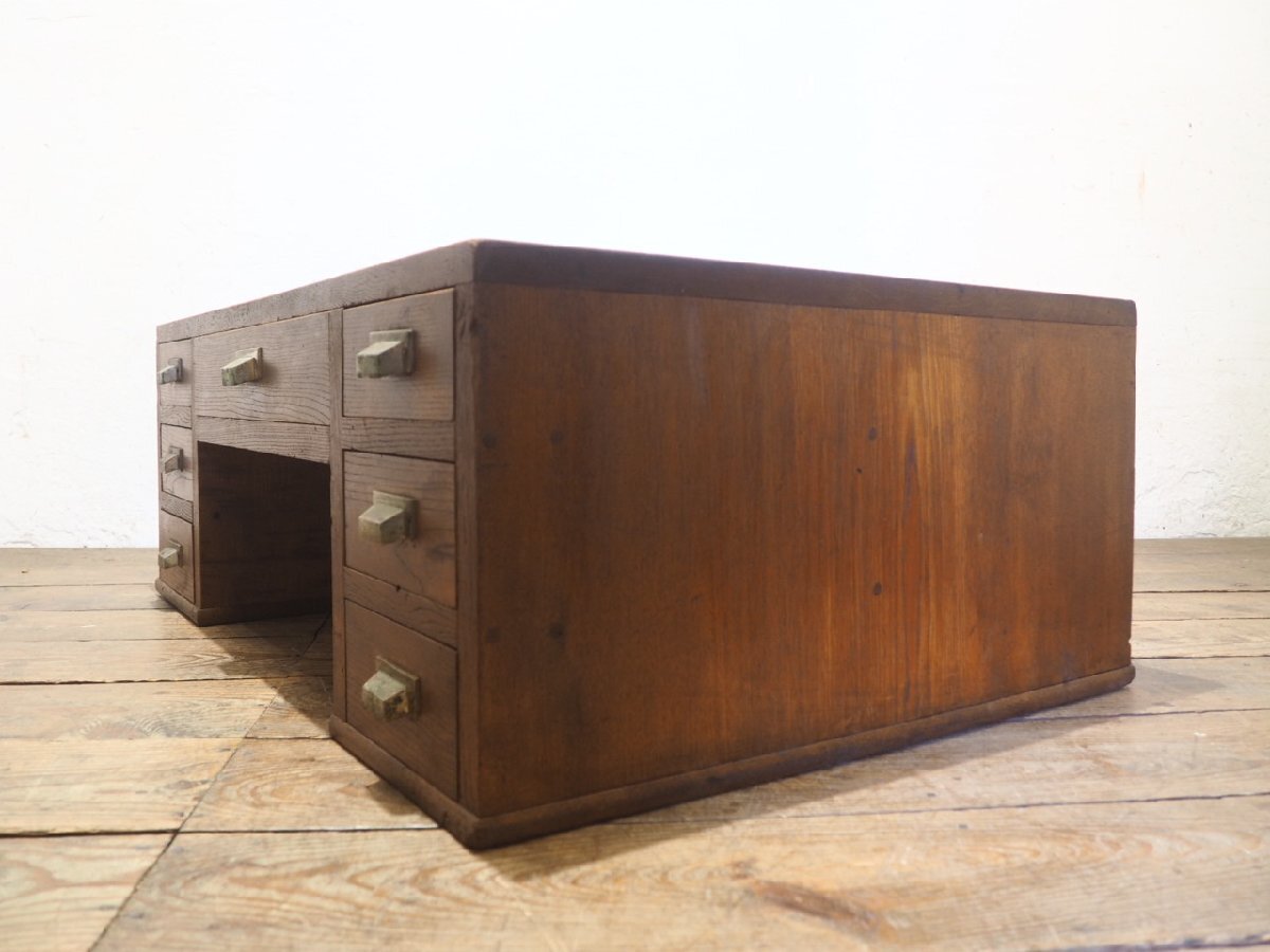 タX1422◆天板W92cm×D62cm◆ロータイプのレトロな古い木製片袖机◆ローテーブル 学習机 文机 ちゃぶ台 引き出し 収納棚 ビンテージL松