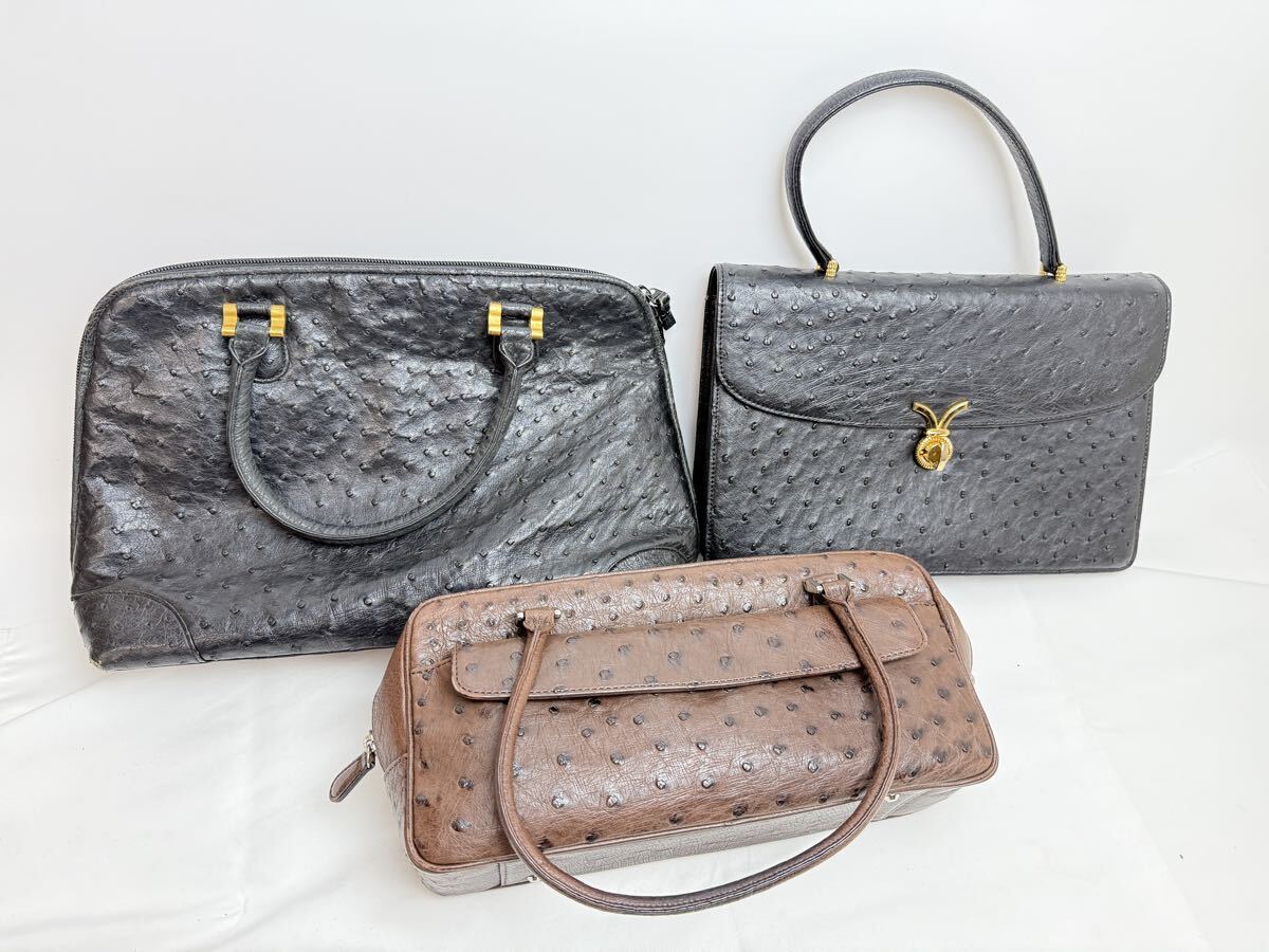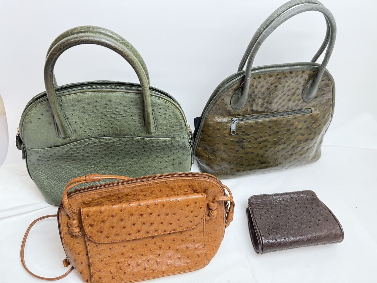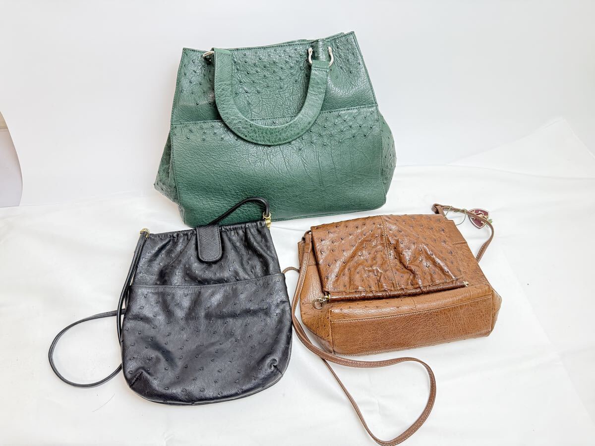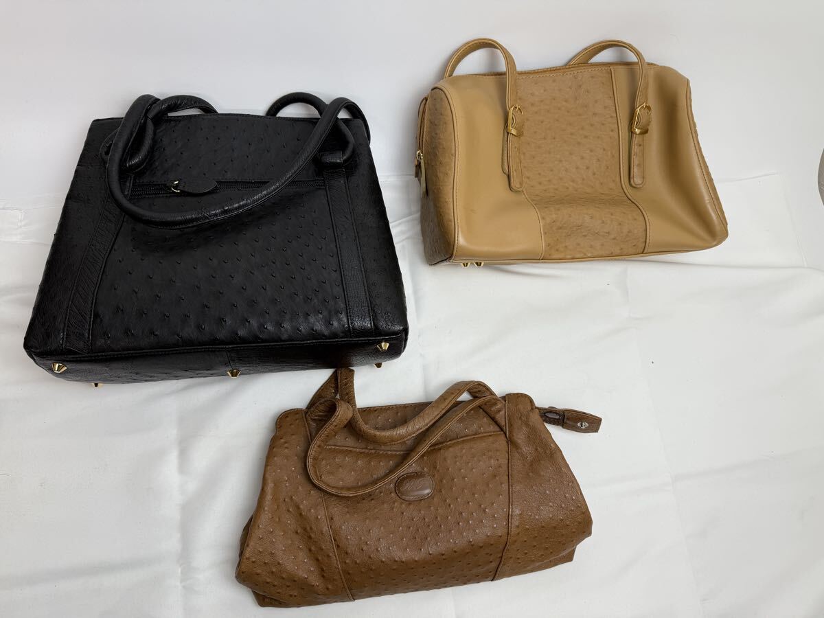 オーストリッチ(ダチョウ革)のバッグ類を中心とした、トートバッグ・ショルダーバッグ・ハンドバッグ・ポーチなどの20点セットまとめ売りです。
