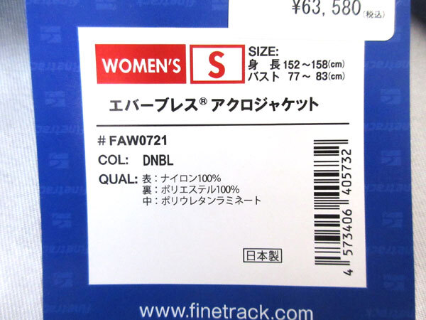 | レディース ファイントラック エバーブレス アクロジャケット(FAW0721) S 日本製 63580円相当 | |