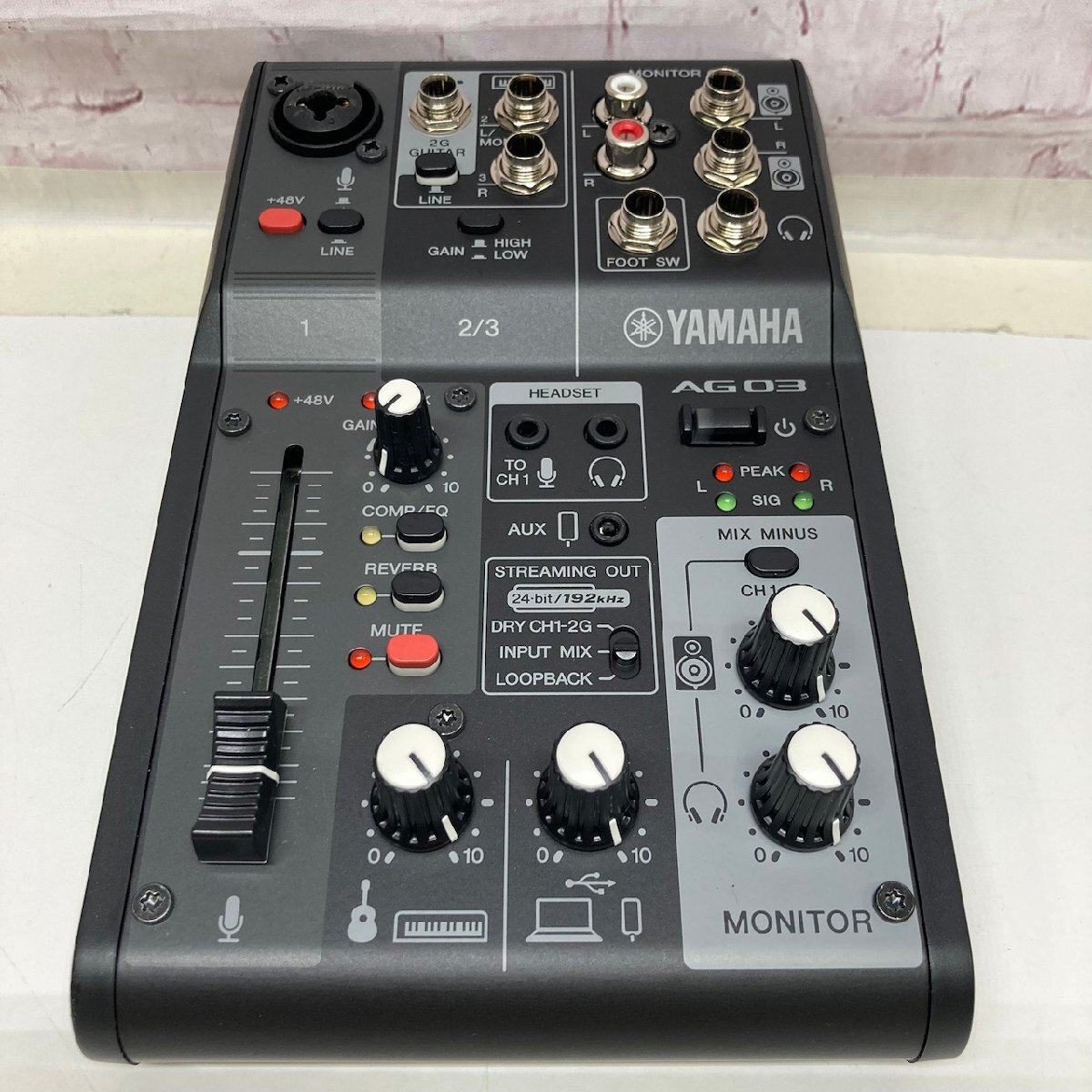 商品に興味をもっていただき、ありがとうございます。 以下お読みいただき、ご連絡をお待ちしています。 【商品の状態】 付属品も含め画像の物が全てとなります。 マイク入力及びアウト出力のチェック、ファンタム電源のチェックを行いました。 各端子の通音確認を行いました。 その他詳細な動作確認はしておりません。 状態については写真にてご確認をお願い致します。 管理:3065 | |