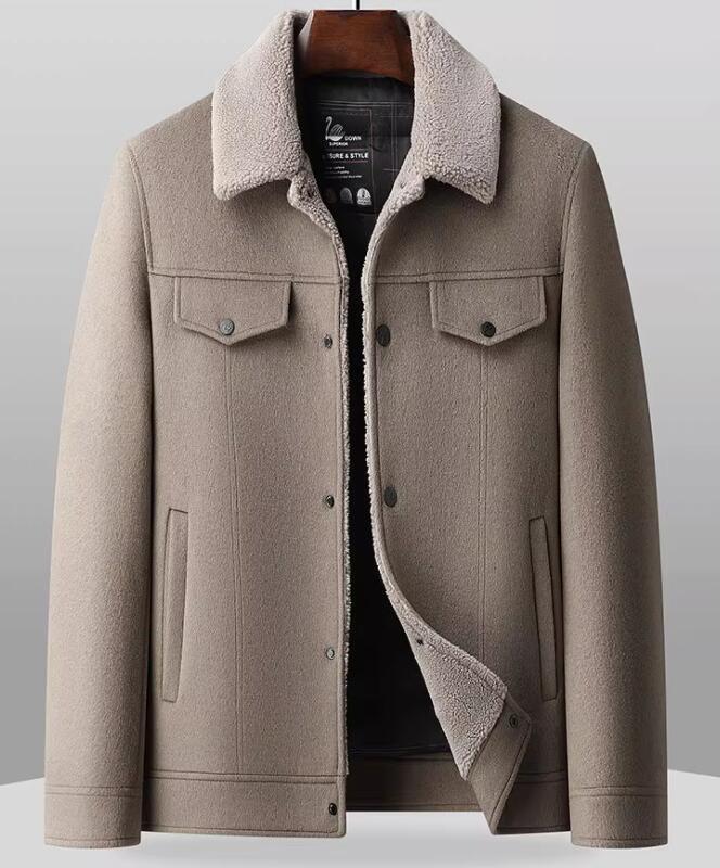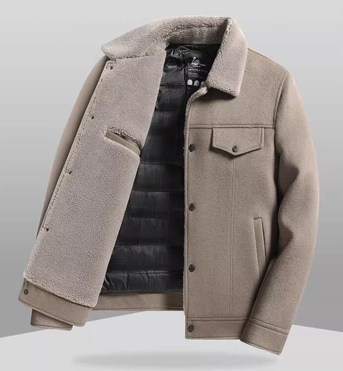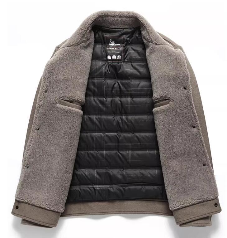 上質*ダウンジャケット メンズ ダウンコート ウール混 ニットジャケット 秋冬 防寒 ブルゾン 極暖 厚手 ストレッチ アウター ブルー L