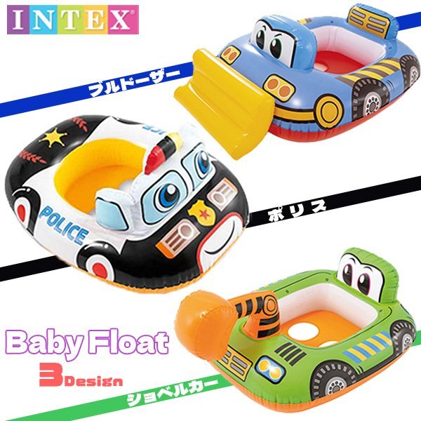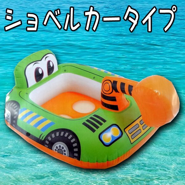 送料無料 ベビー用 フロート ブルドーザー青 ショベルカー緑 ポリス かっこいい 乗り物 浮き輪 のりものボート ベビー 赤ちゃん