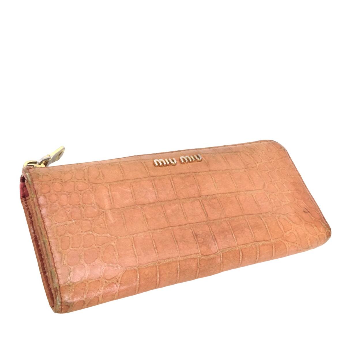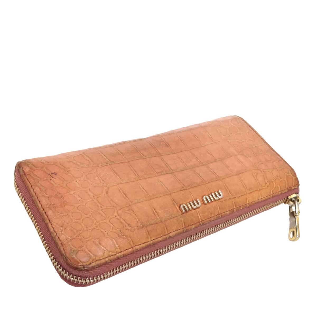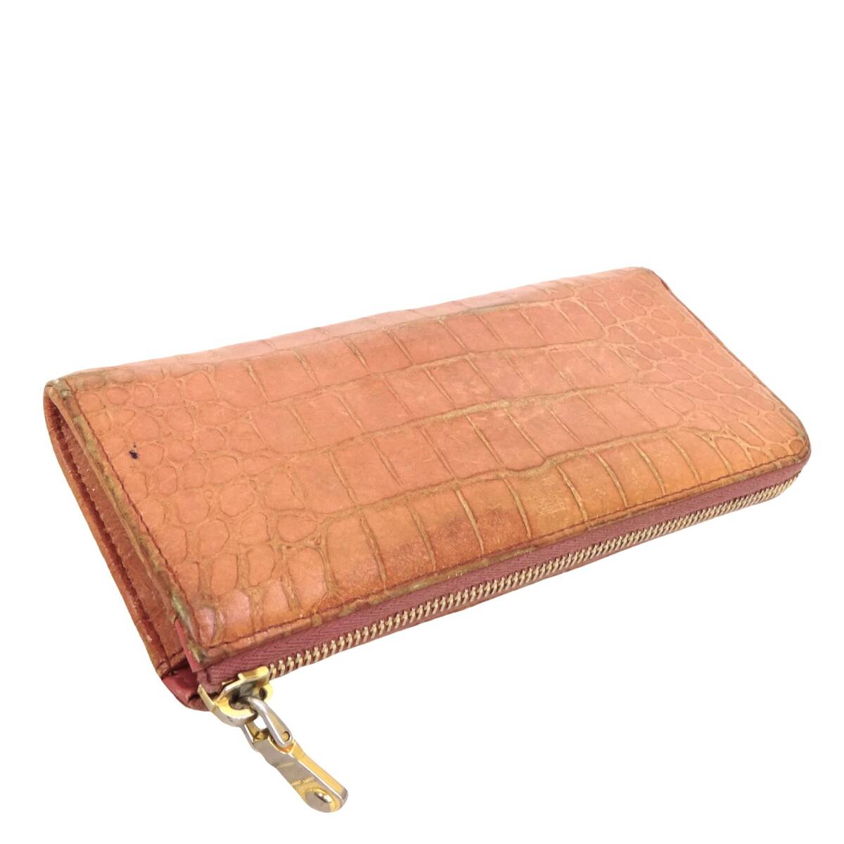 本物 ■ミュウミュウ■L ジップ ウォレット クロコエンボス ピンク レザー ゴールド L字ファスナー長財布 /37075