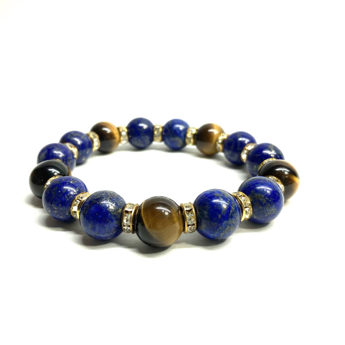 ラピスラズリ&タイガーアイ パワーストーン ブレスレット 天然石ブレス (ゴールド) 12mm 幸運 開運 メンズ 男性