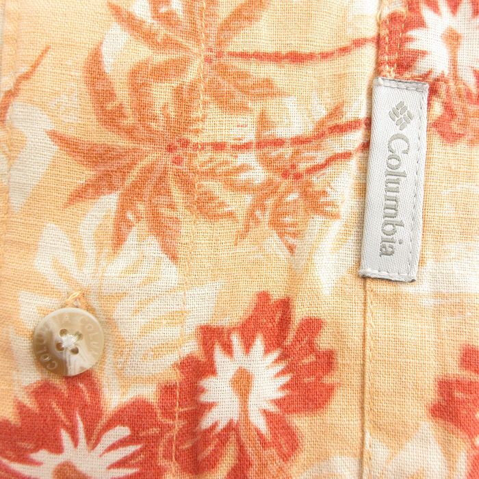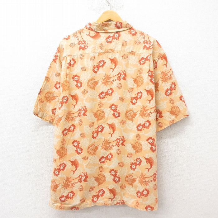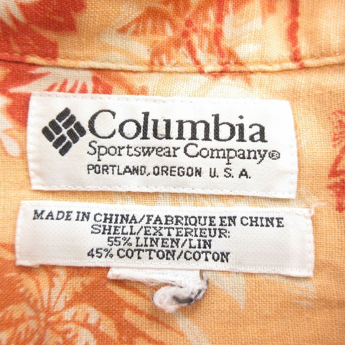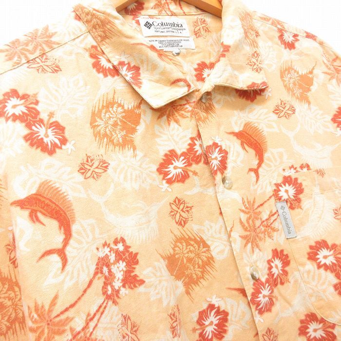 【商品名】 XL★古着 コロンビア 半袖 ハワイアン シャツ メンズ 00年代 00s カジキ ヤシの木 リネン オレンジ