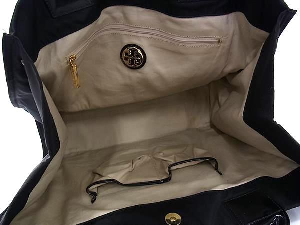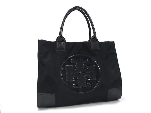 1円 ■美品■ TORY BURCH トリーバーチ エラ ナイロン×パテントレザー ハンドバッグ トート ショルダー 肩掛けかばん ブラック系 GC0811