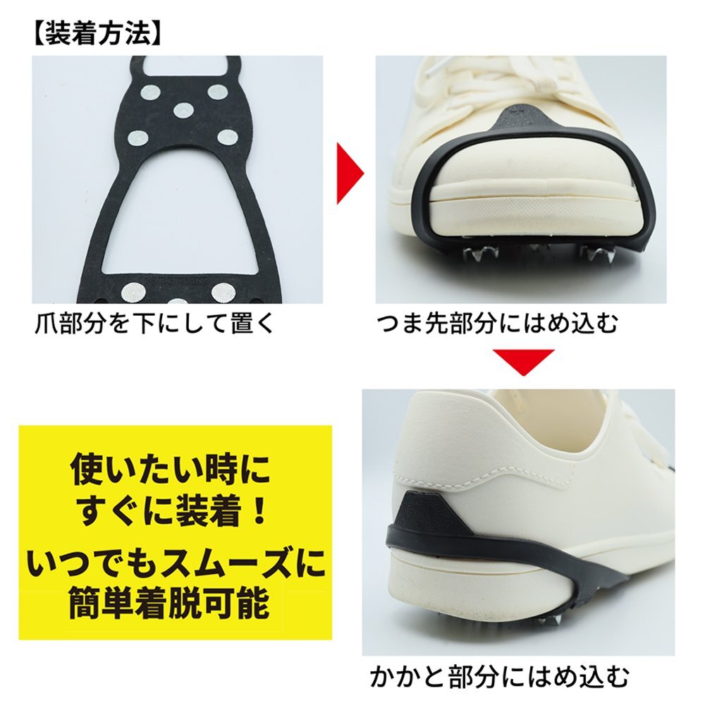 | 靴にかぶせて簡単装着! 8つの爪が雪道・凍結路を ガッチリつかむ! |