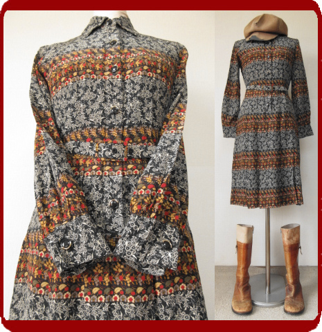 ♪古着レトロ・Vintage黒小花柄フォークロアワンピ♪